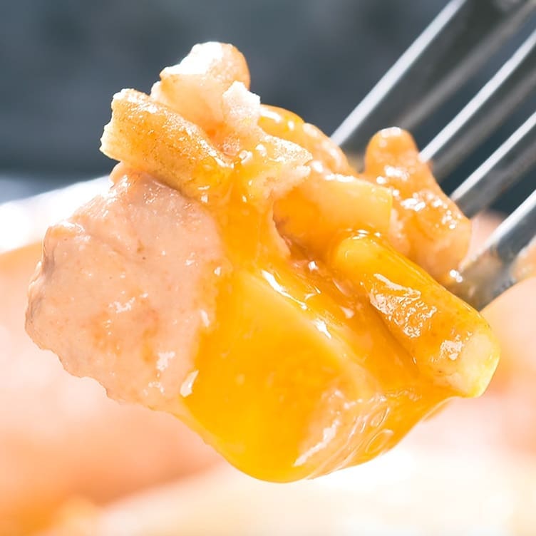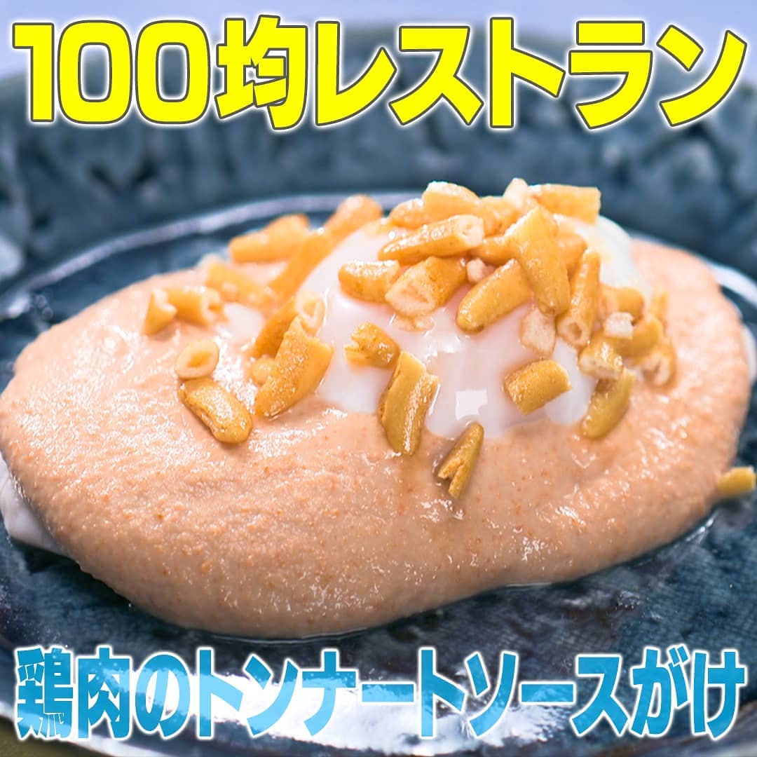 ②サラダチキン(1袋)を食べやすい大きさにカットし半熟卵を乗せ、トンナートソースをたっぷりかける