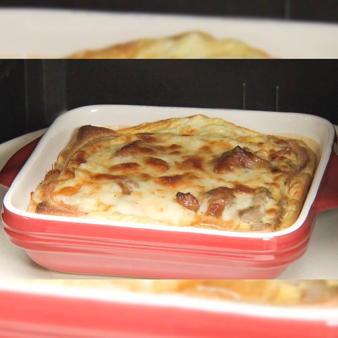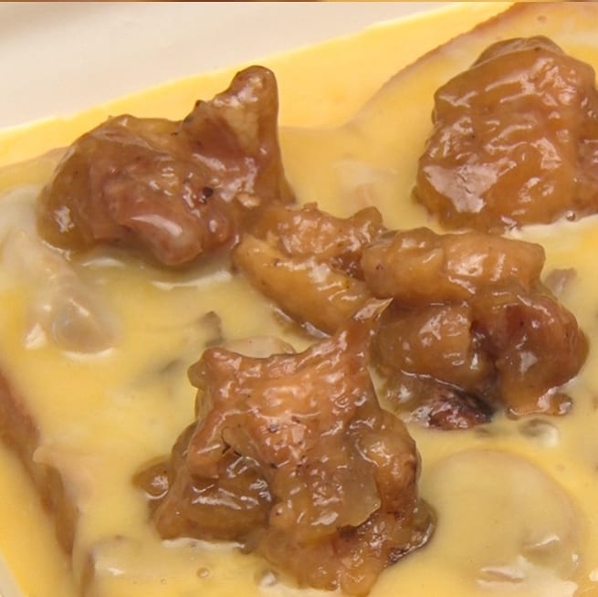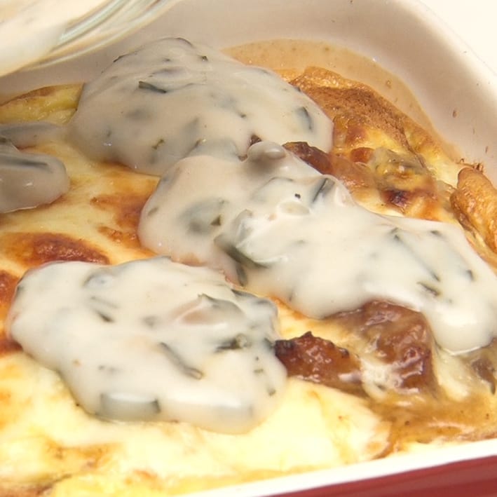⑤最後にトリュフ風クリームソースをキッシュにかけて完成!