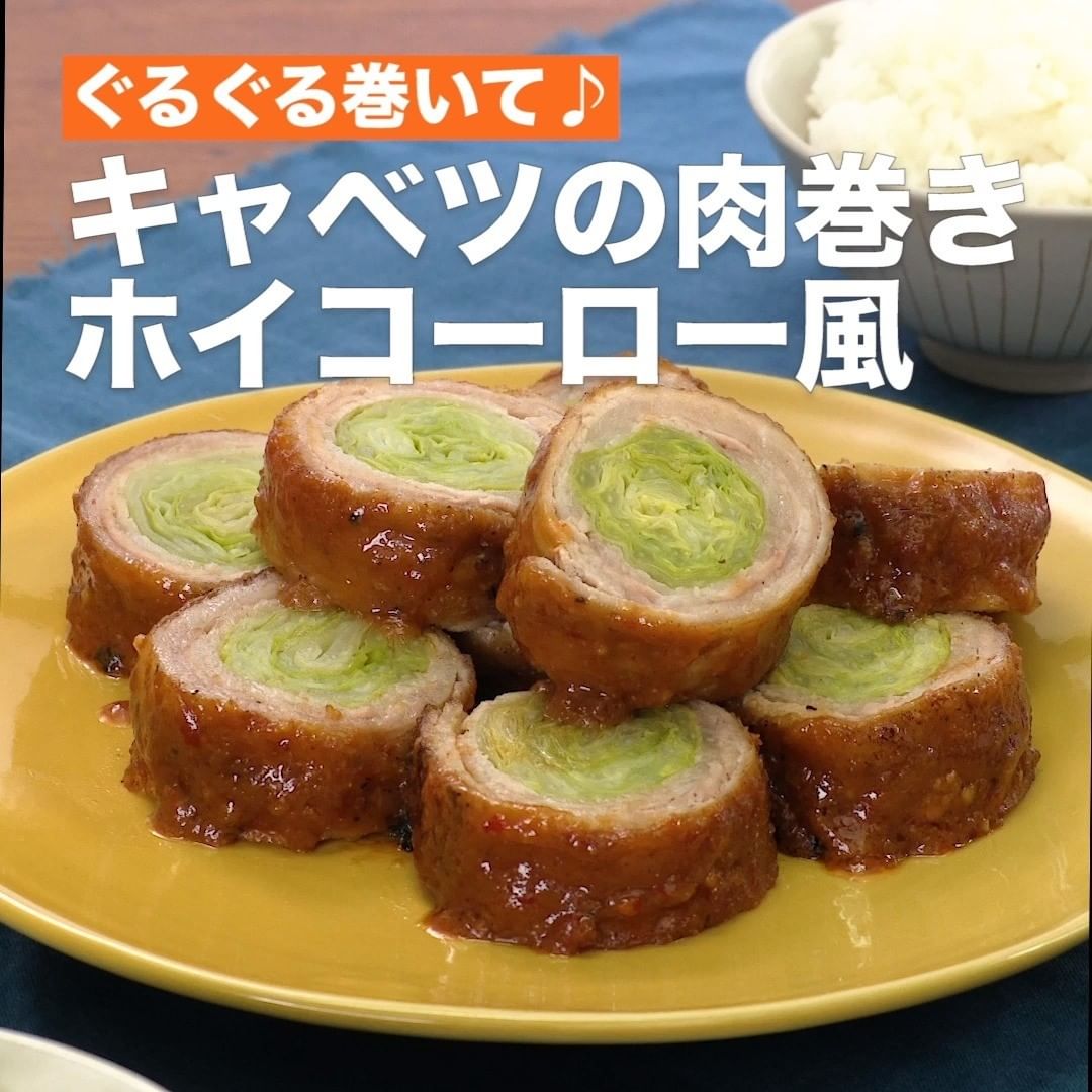 ⑧<ぐるぐる巻いて♪キャベツの肉巻きホイコーロー風>