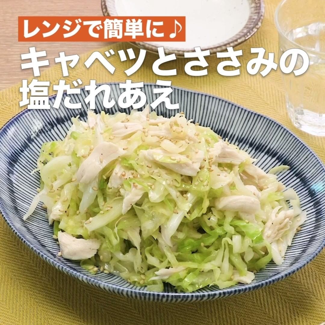 ⑦<レンジで簡単に♪キャベツとささみの塩だれあえ>