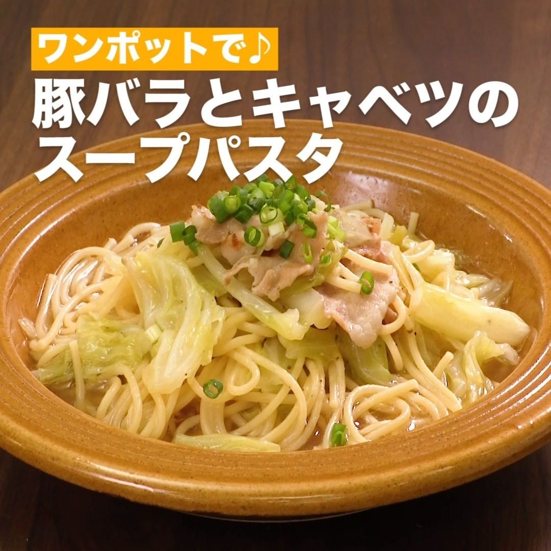 ⑥<ワンポットで♪豚バラとキャベツのスープパスタ>
