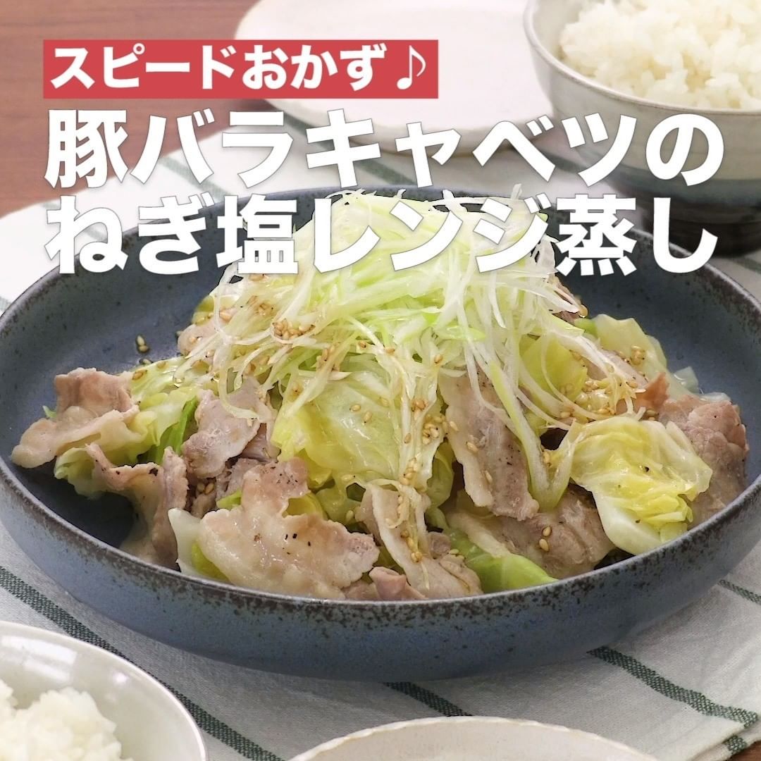 ④<スピードおかず♪豚バラキャベツのねぎ塩レンジ蒸し>