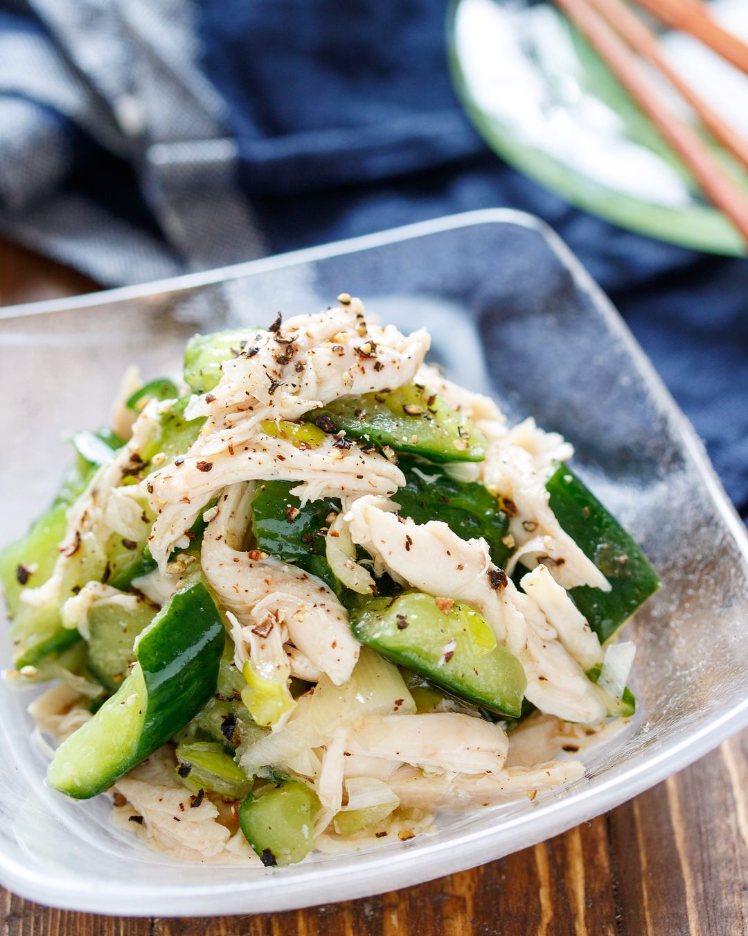 【かち割りきゅうりとささ身のネギ塩あえ】#作り置き #やみつき #包丁不要 #レンジ #おつまみ #副菜