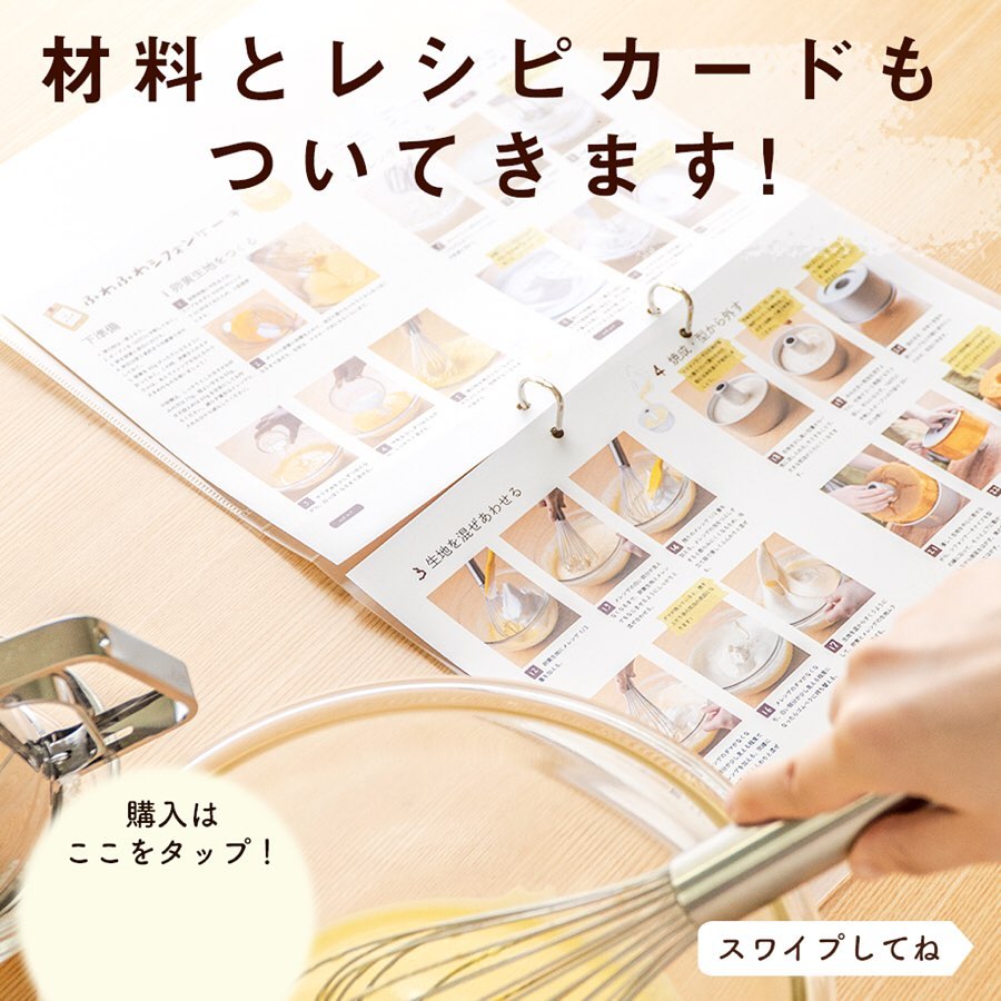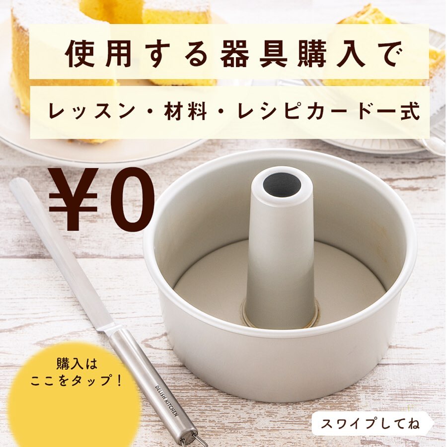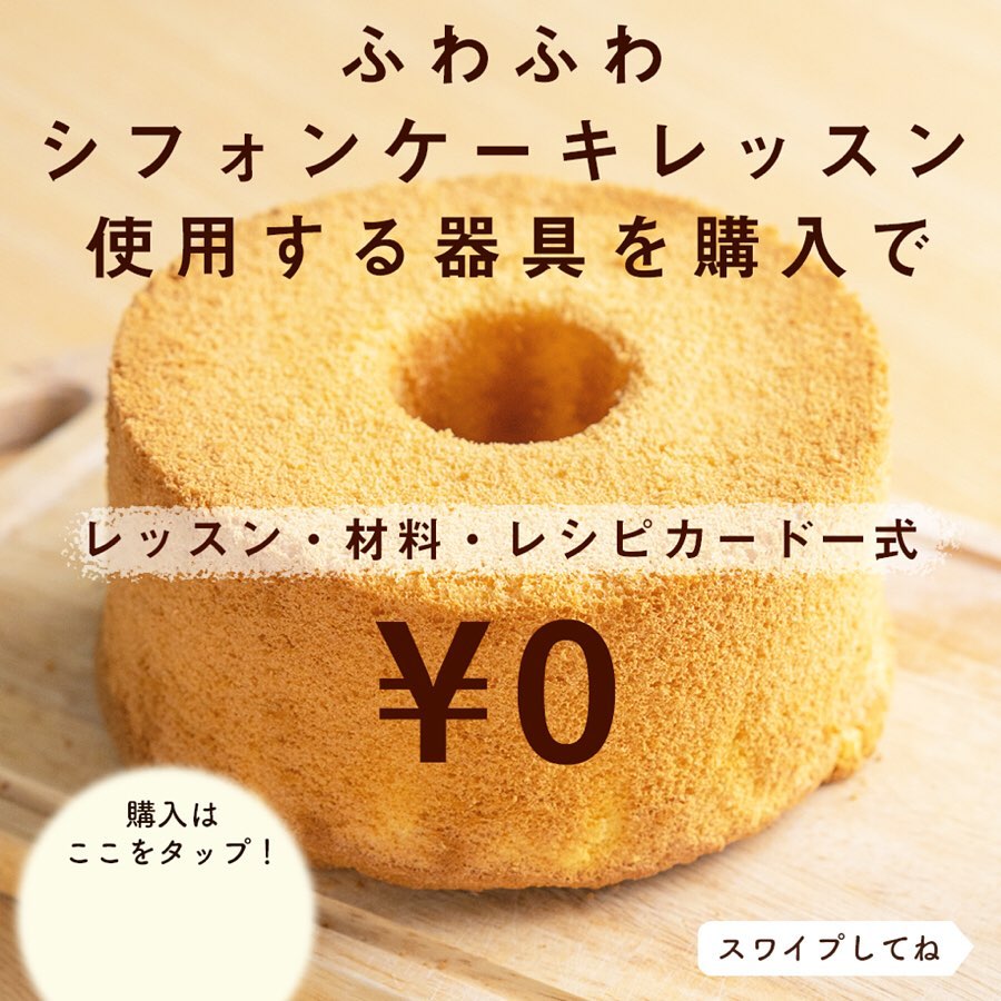 ふわふわシフォンケーキレッスン、使用する器具を購入で、レッスン・材料・レシピカード一式 ¥0!
