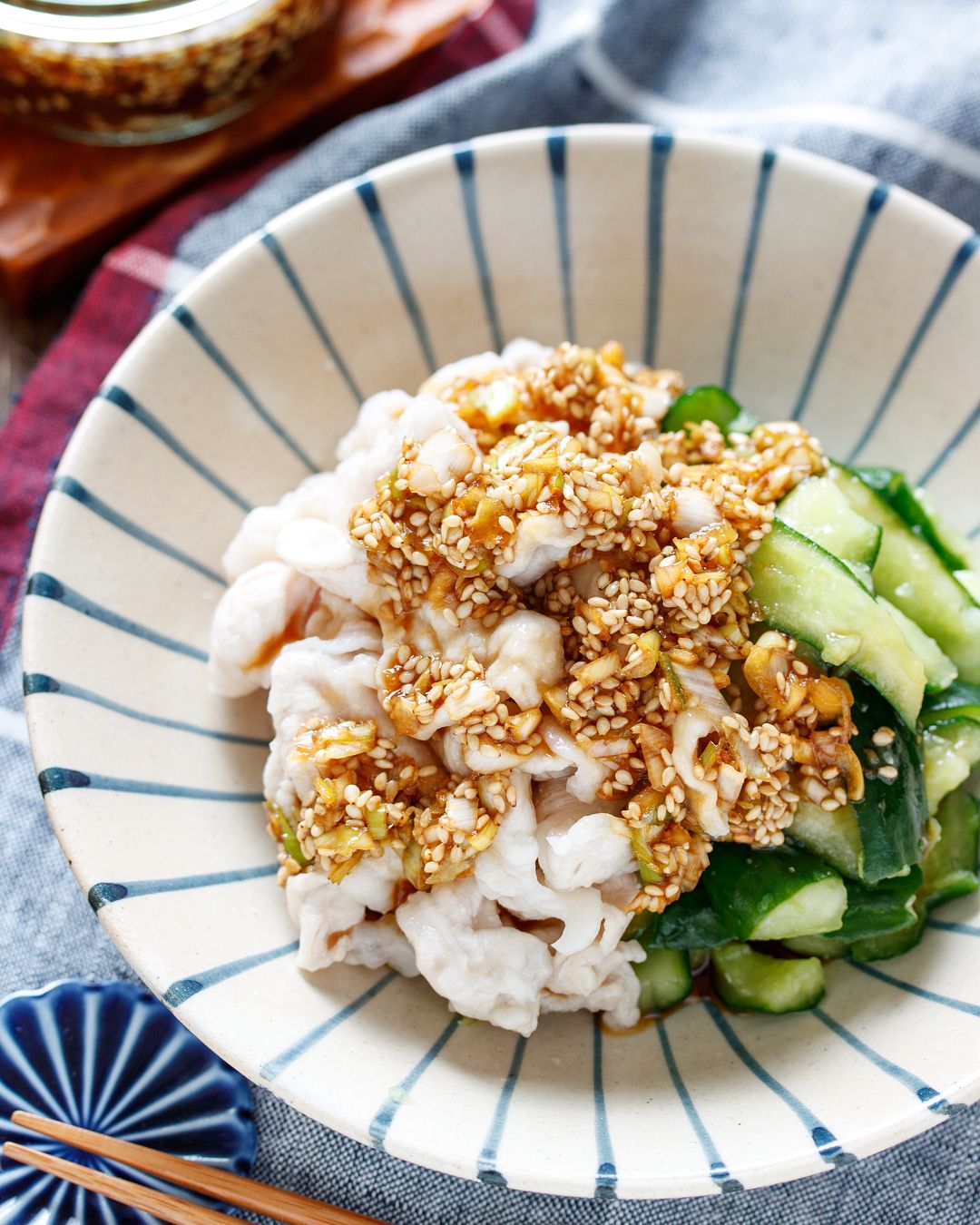 【かち割りきゅうりと豚しゃぶの香味だれ】#作り置き #包丁不要 #ヘルシー #主食 #中華風