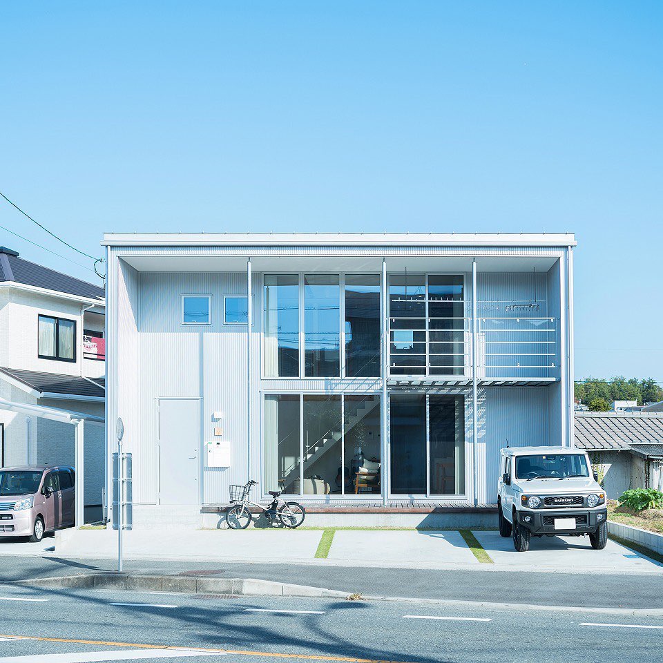 広島県呉市にある「木の家」K邸は、青空に外壁がひときわ映えるお宅です。