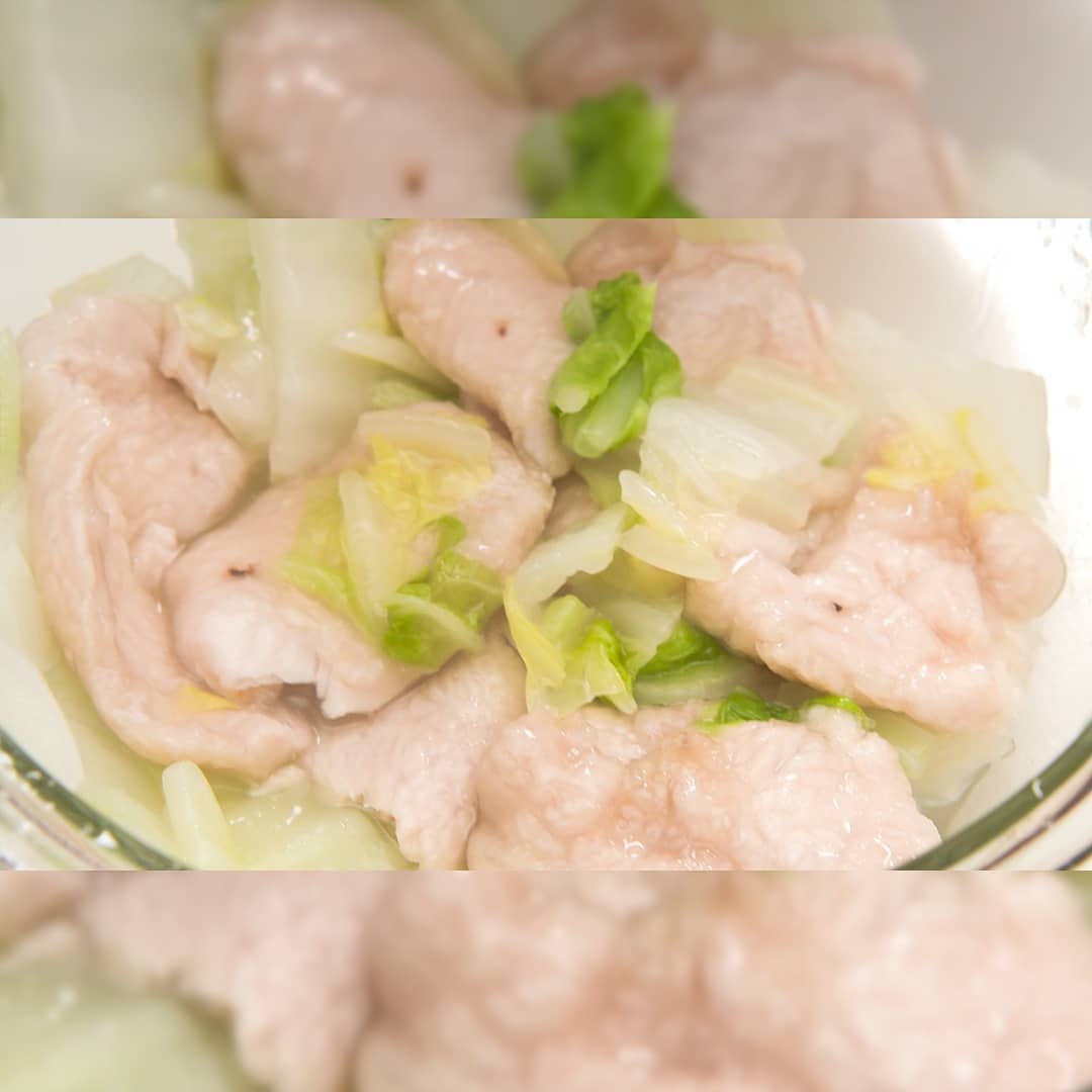 ⑧白菜から出た水分を鶏肉にまとわせて完成!