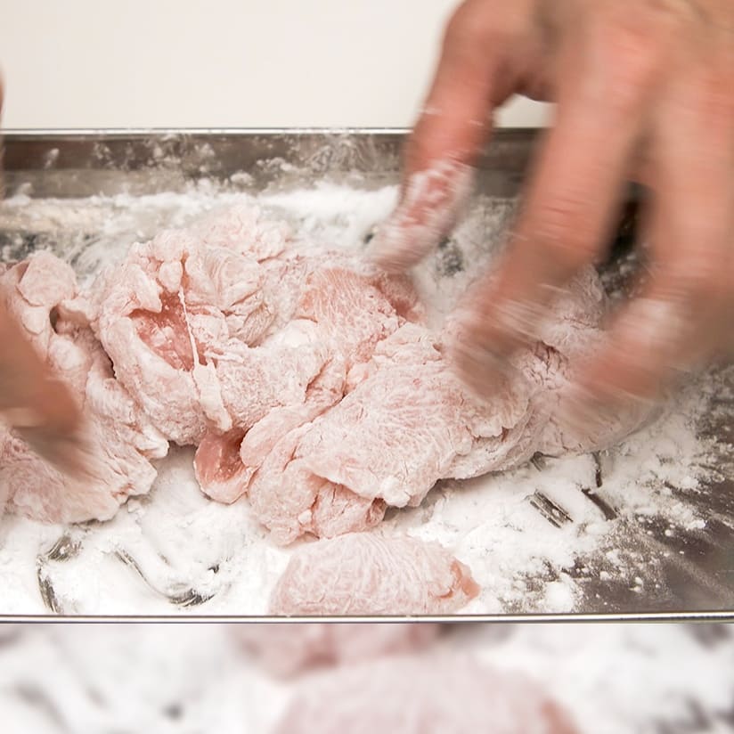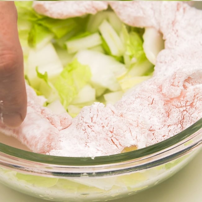 ④片栗粉大さじ3を全体にまぶす