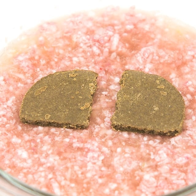 ②水大さじ1を加え、ふんわりラップをかけ600Wで2分レンチンする