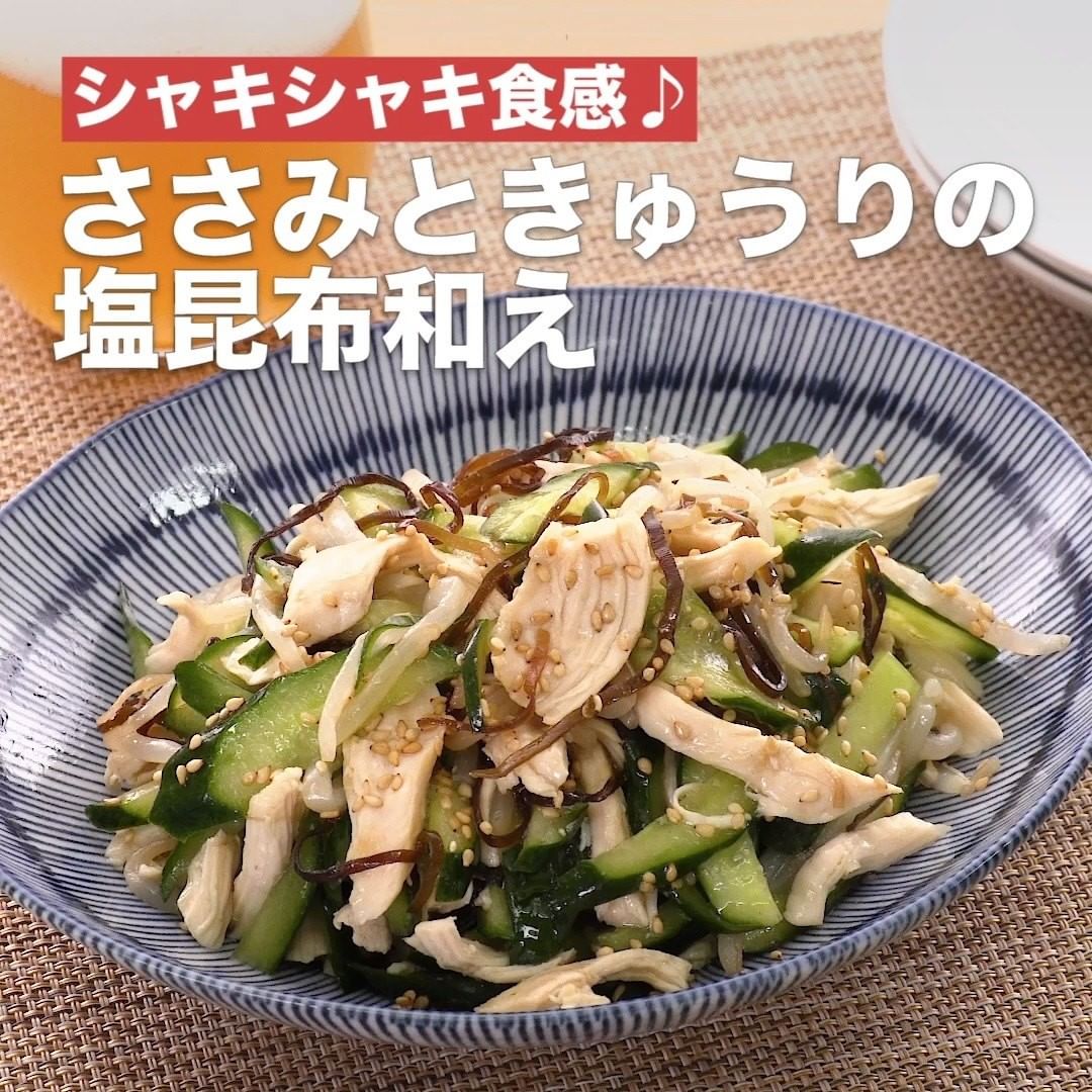 ④<シャキシャキ食感♪ささみときゅうりの塩昆布和え>