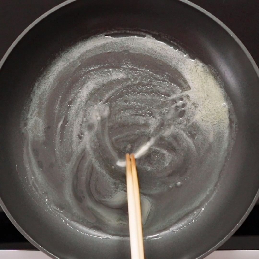 6. 両面に焼き色がついたら、4を入れ中火で混ぜながら加熱し、とろみがついたら火から下ろします。