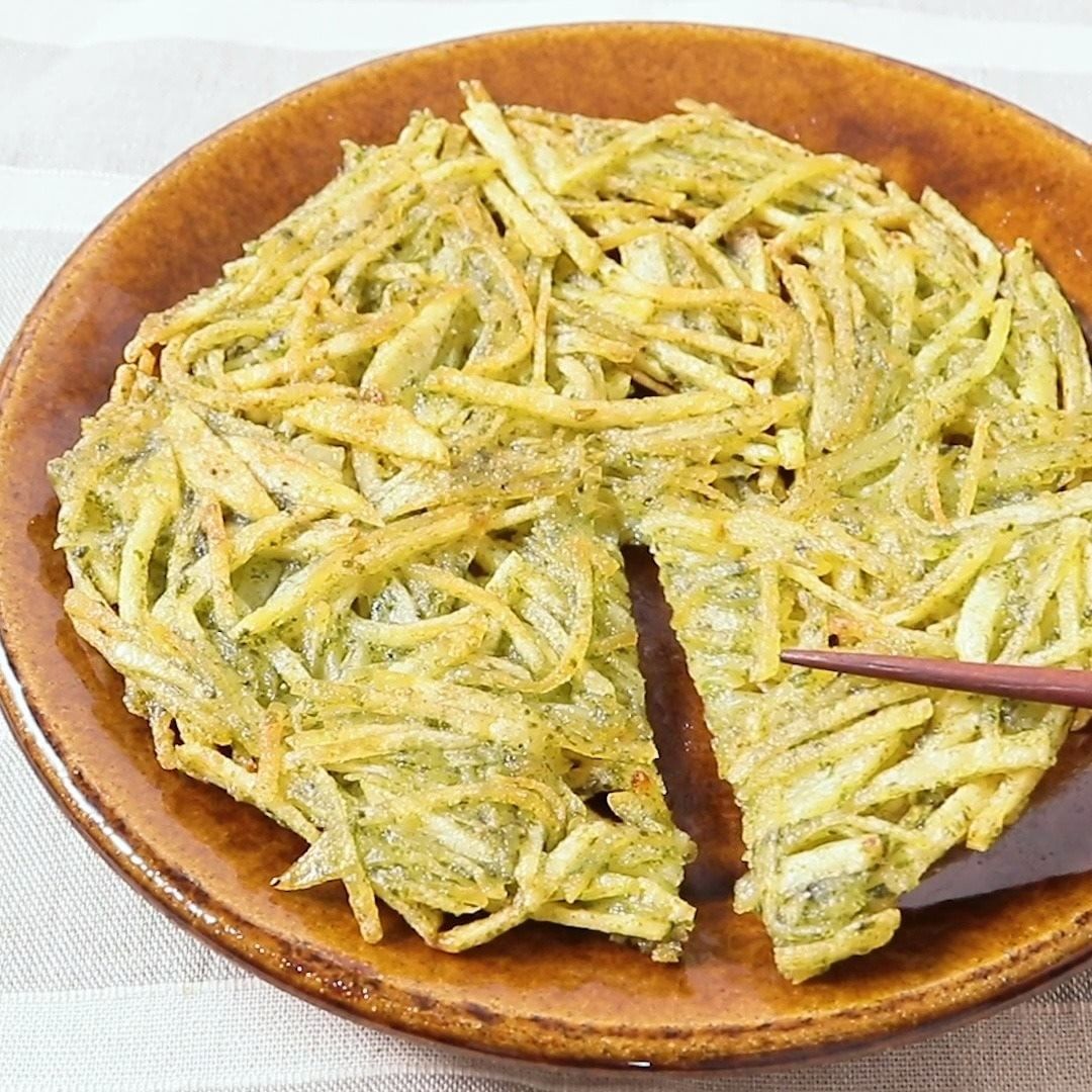 のり塩味がおいしい、ボリュームたっぷりのじゃがいもガレットのご紹介です。のりしおとチーズの組み合わせがとてもおいしい一品ですよ。今晩のおかずのあと一品にいかがでしょうか。この機会にぜひ作ってみてくださいね。 .