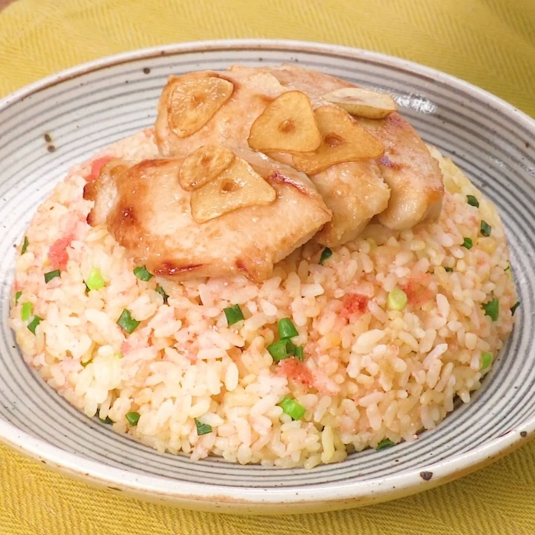 ごはんに卵を混ぜることで、少ない油でパラパラに仕上がります♪塩麹に漬けることで鶏むねはジューシーな味わいに!明太子は色良く仕上げるために最後に加えて手早く炒めましょう!