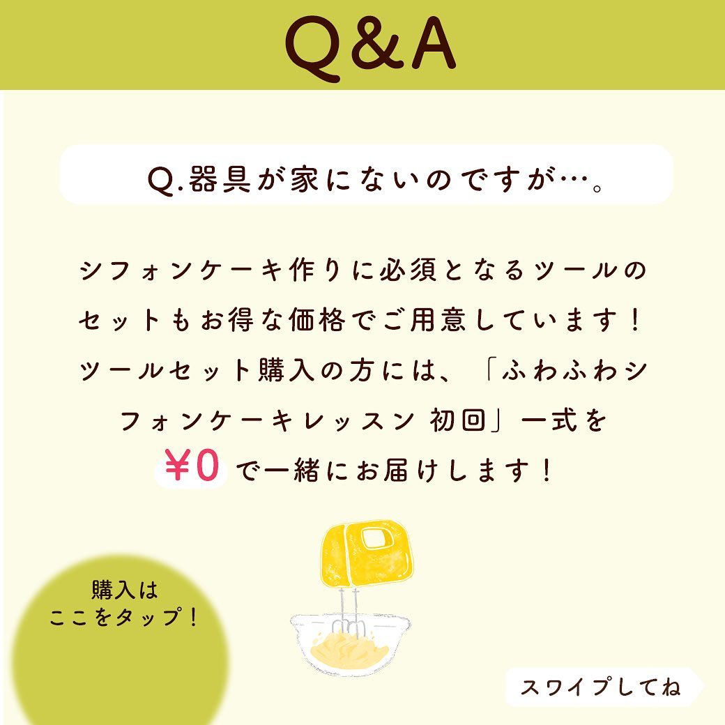 ツールセット購入の方には、「ふわふわシフォンケーキレッスン 初回」一式を