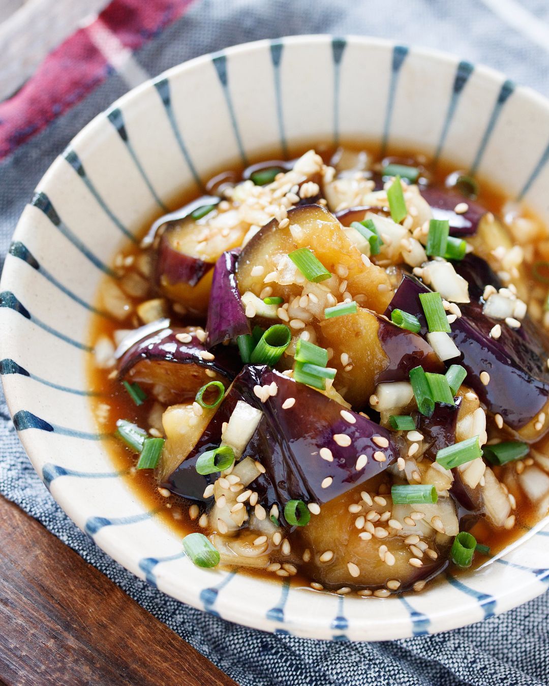 【なすの香味ねぎソース】#作り置き #揚げない #オイル蒸し #副菜 #中華風