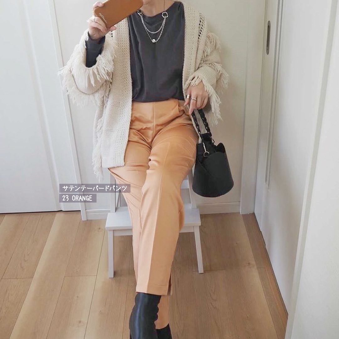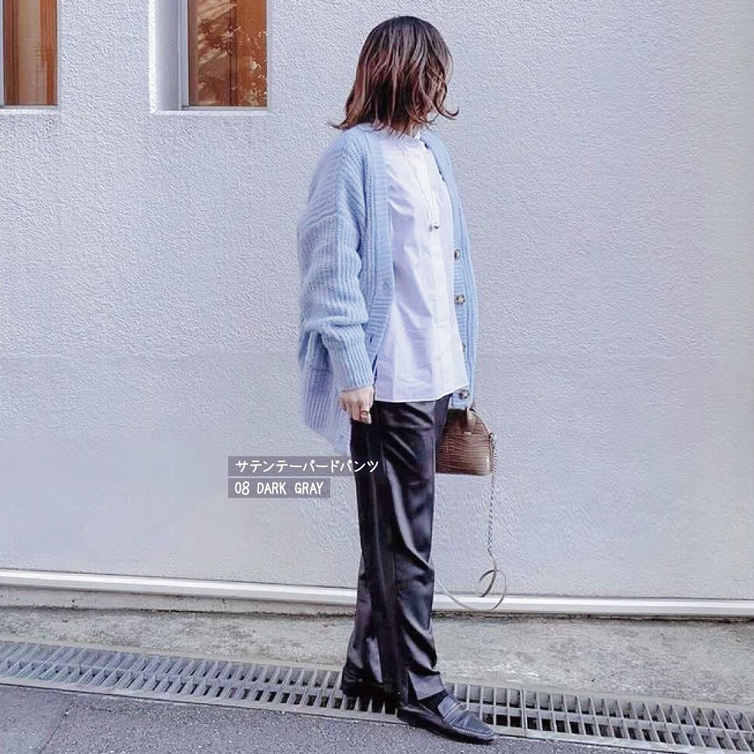 サテンパンツがきてる✨着こなしに華を添えてくれる、光沢感がGOODな🥰春ボトムス👍人気のテーパードデザインだから、無理せず楽ちんにはけるのに、きれい見えする👏優秀パンツ😘1枚持っていると、急なお出かけにも、一役買ってくれそうです🙌是非、チェックしてみてくださいね💁♀️💕