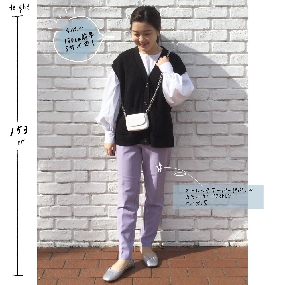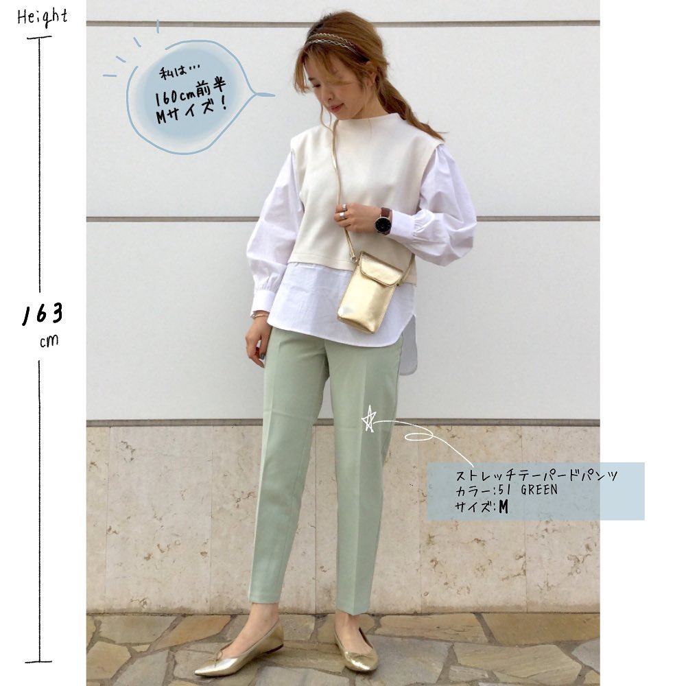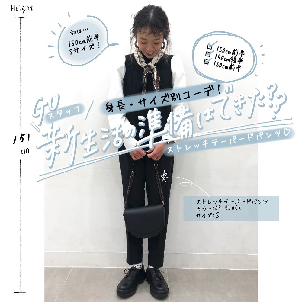 新生活の準備をそろそろはじめたいところ😍GUスタッフの着こなしを✨身長・サイズ別でご紹介します❣️何かとお役立ちな、きれいめボトムスの、ストレッチテーパードパンツ😄カラーのバリエーションもあるから😘シルエットがハマれば✨色違いで持っておくのもGOOD👍 動きやすい素材感も嬉しいパンツです✨色々なシチュエーションに合わせて、着こなしのバリエーションを広げたいですね🙌ぜひ、チェックしてみてくださいね💁♀️💕