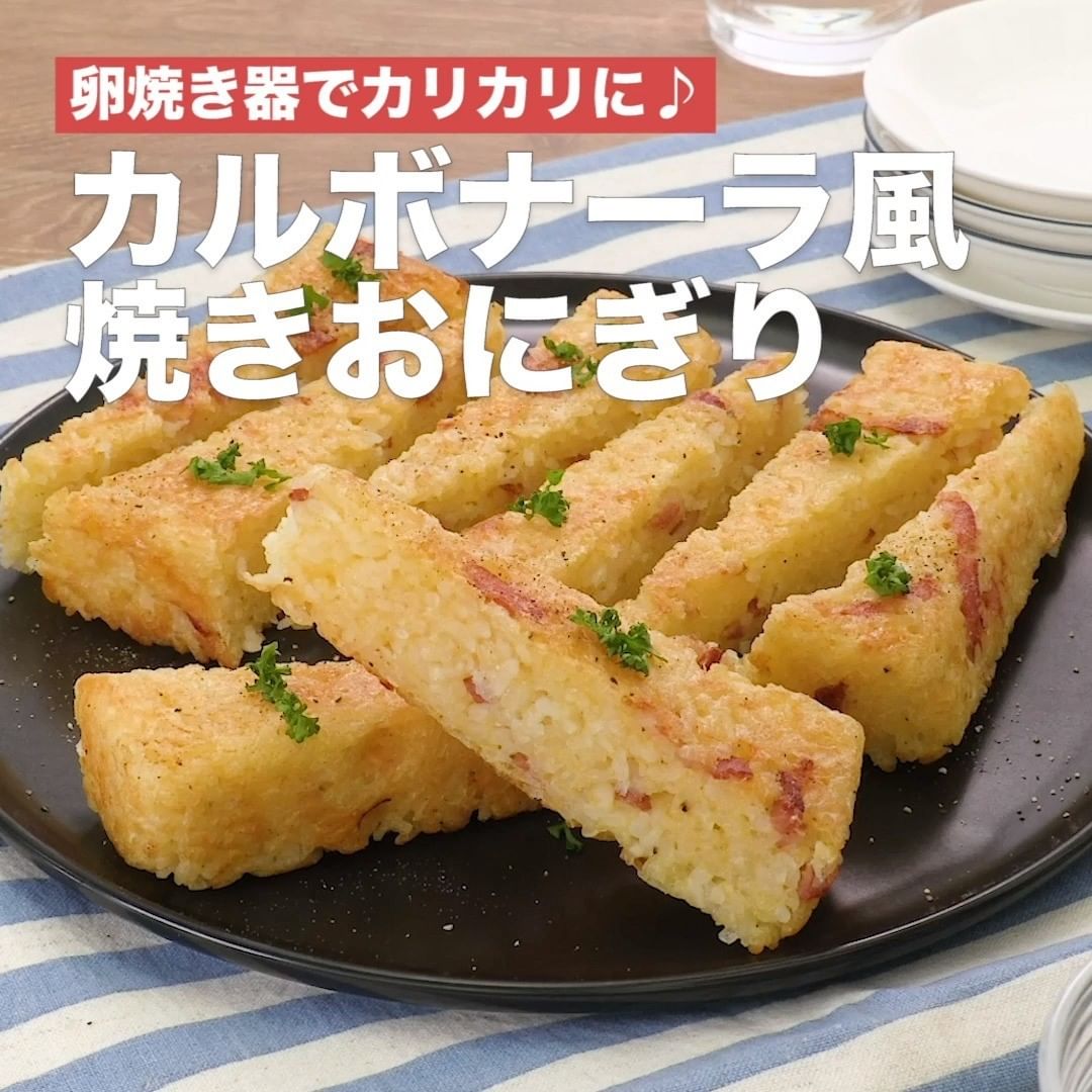 ③<卵焼き器でカリカリに♪カルボナーラ風焼きおにぎり>
