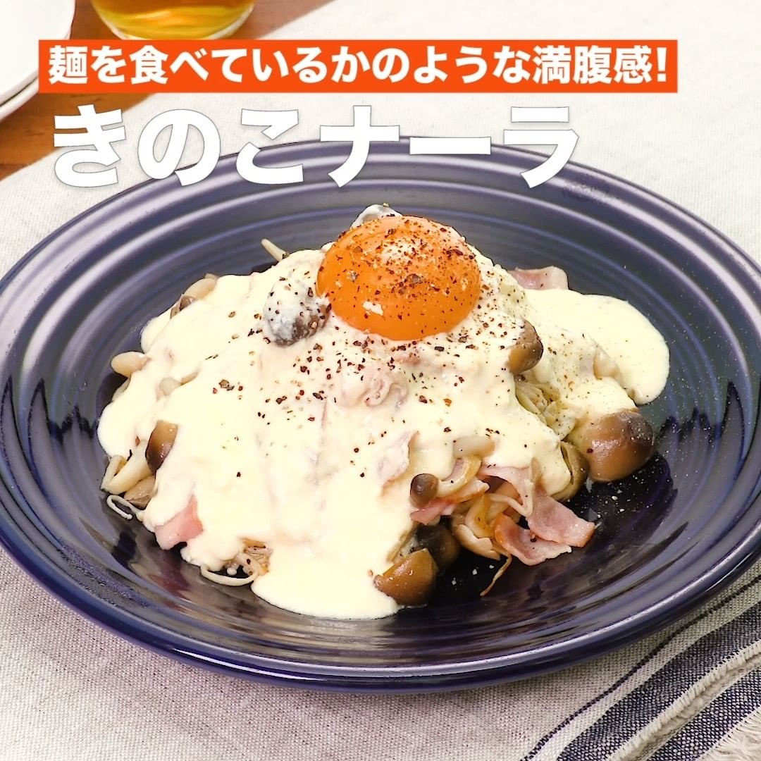 ①<麺を食べているかのような満腹感!きのこナーラ>