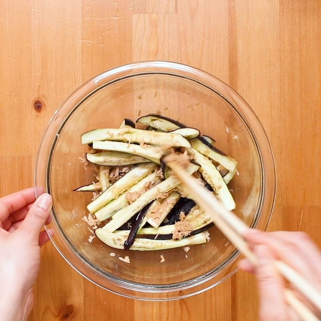 白いご飯にぴったりの、一度食べたら止まらないおいしさの一品です。なすを切ったら調味料を加えて電子レンジでチンするだけ!誰でもとても簡単においしく作れますよ。