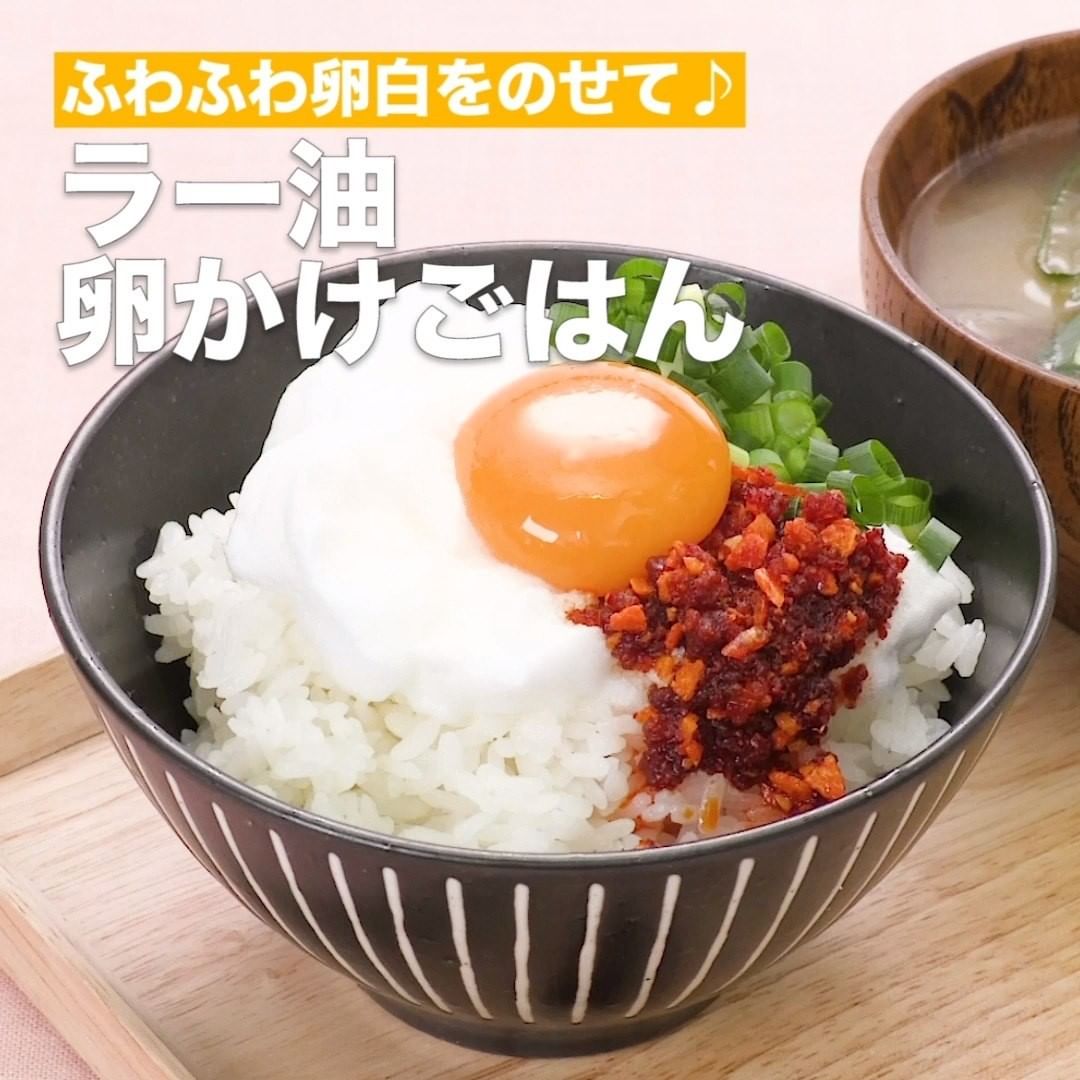 <ふわふわ卵白をのせて♪ラー油卵かけごはん>は3つ目