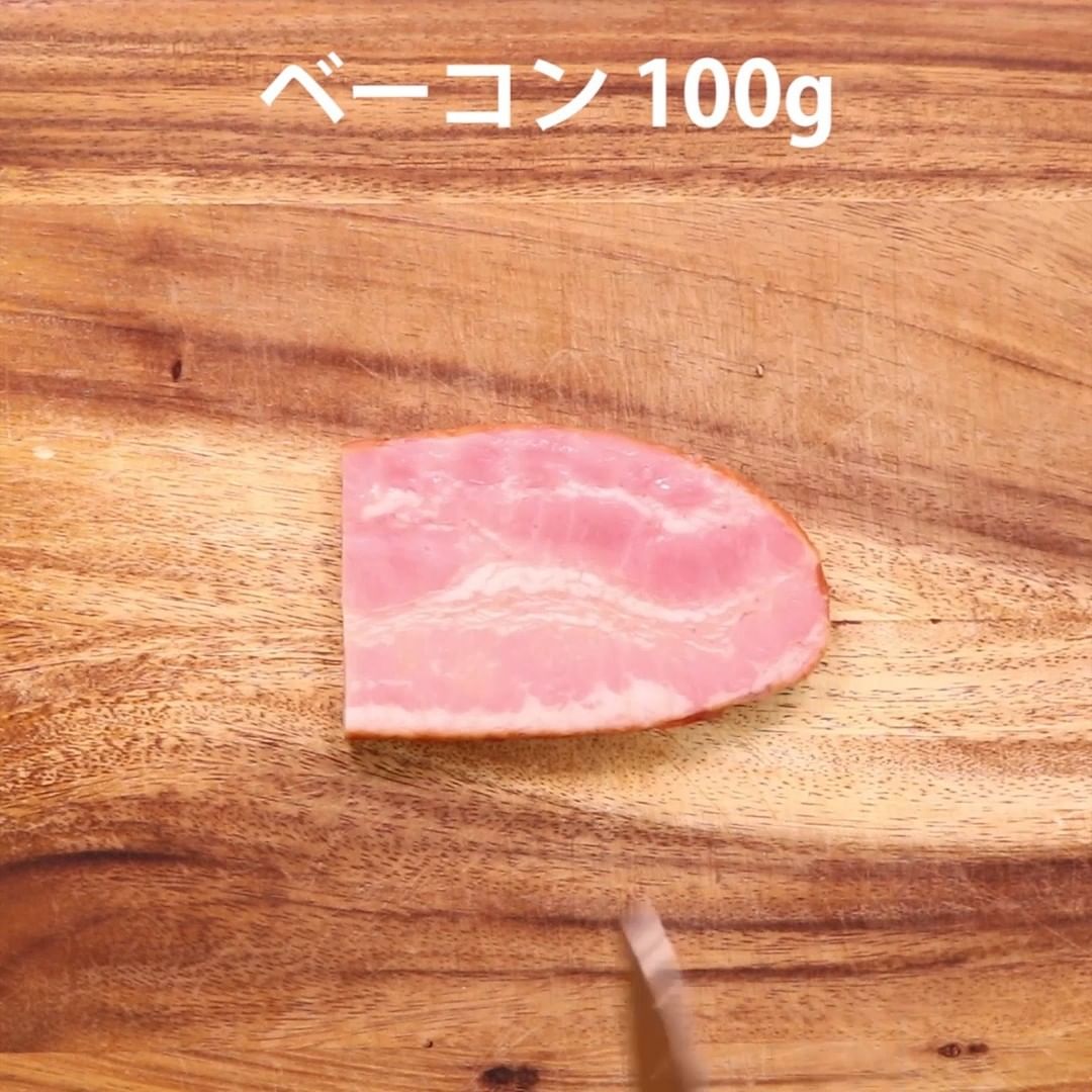 4. ベーコンは1cm幅に切ります。