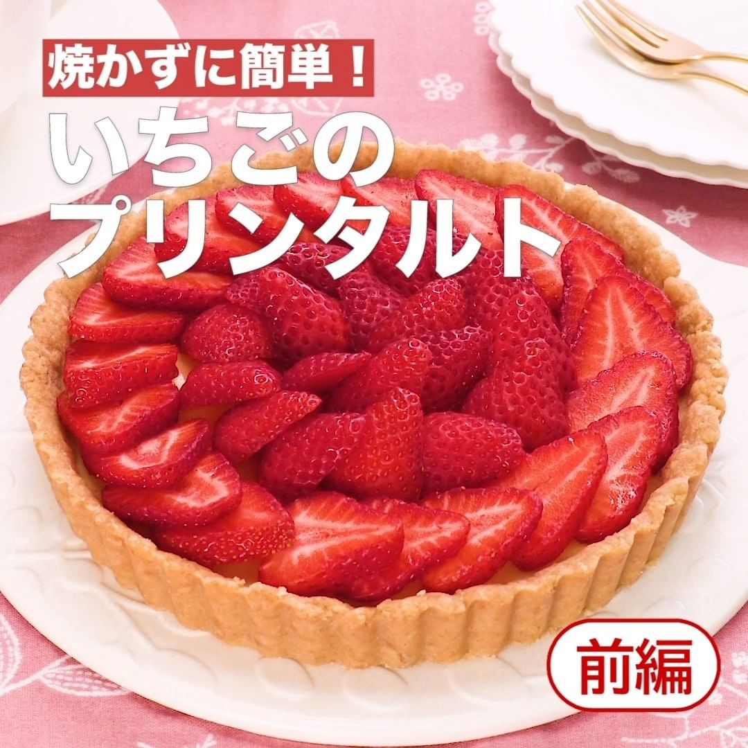 ②<焼かずに簡単!いちごのプリンタルト>