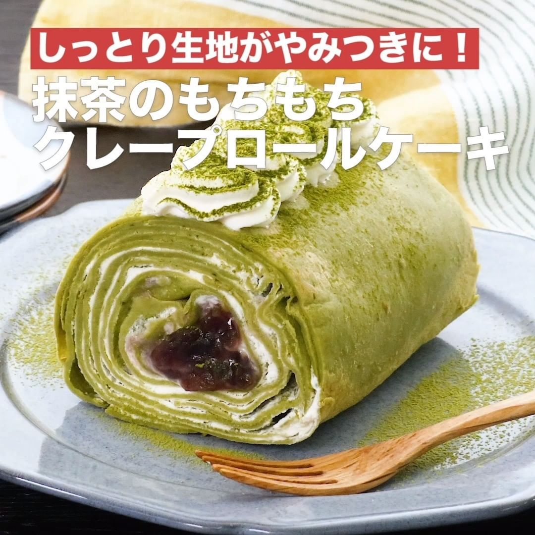⑧<しっとり生地がやみつきに!抹茶のもちもちクレープロールケーキ>