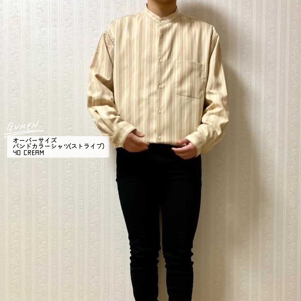 ☑︎オーバーサイズバンドカラーシャツ(長袖)(ストライプ)