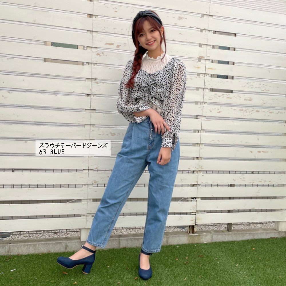 #シャーリングブラウス #スラウチテーパードジーンズ #モックネックスウェットプルオーバー #リアルコーデ #プチプラコーデ #高見えコーデ