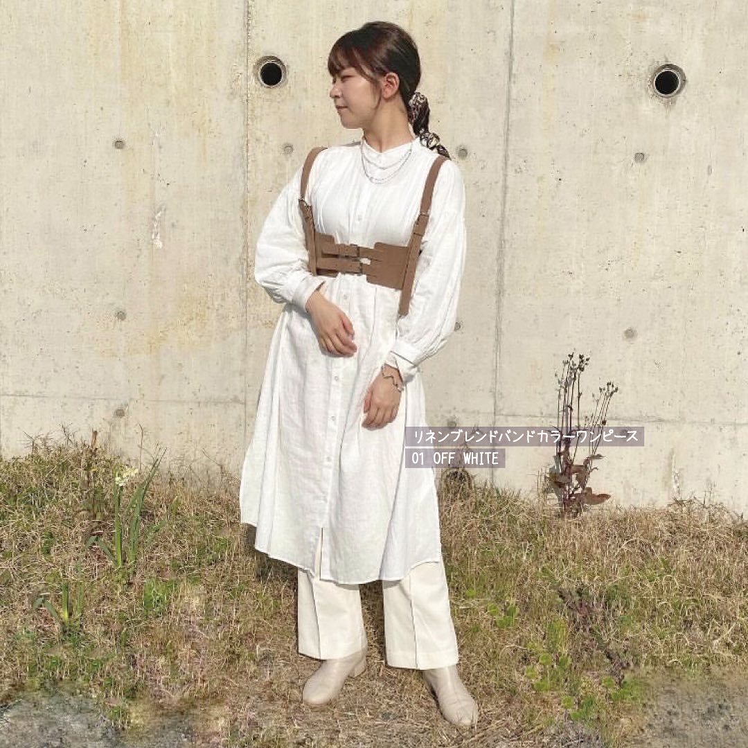 ☑︎リネンブレンドバンドカラーワンピース(7分袖)
