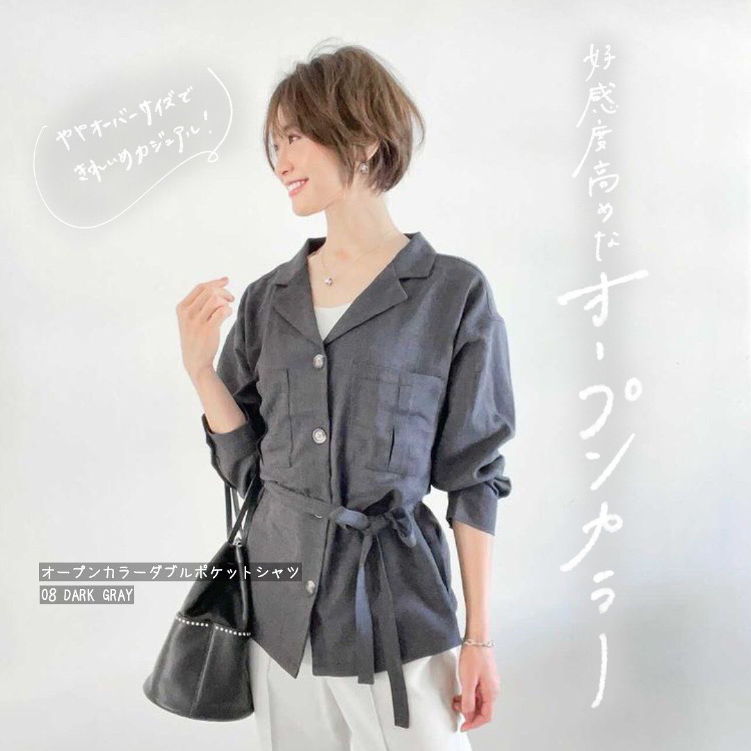 新作の、オープンカラーダブルポケットシャツ✨一枚で、好感度高めのスタイリングに🥰軽やかな素材感が、春らしいのもおすすめポイント👌ウエストマークしても良し👍ボタンを開けて、羽織っても良し😘気候に合わせながら、重ね着で調節して着こなせるのが、嬉しいですね🙌是非、チェックしてみてくださいね💁♀️💕