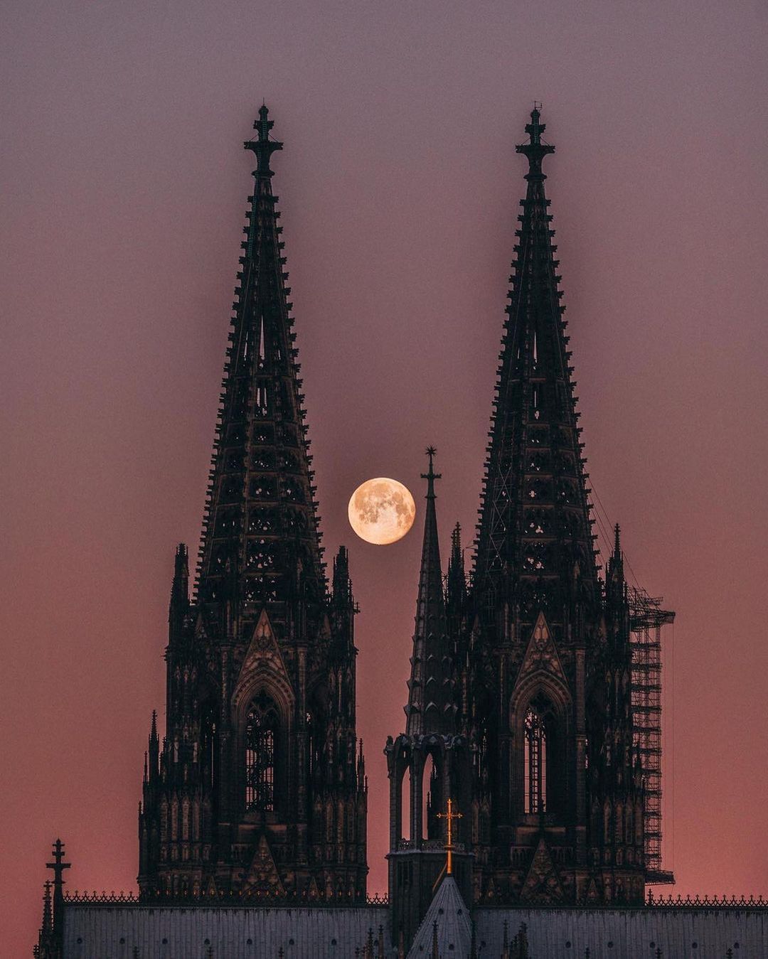 A stunning moonrise in Cologne!