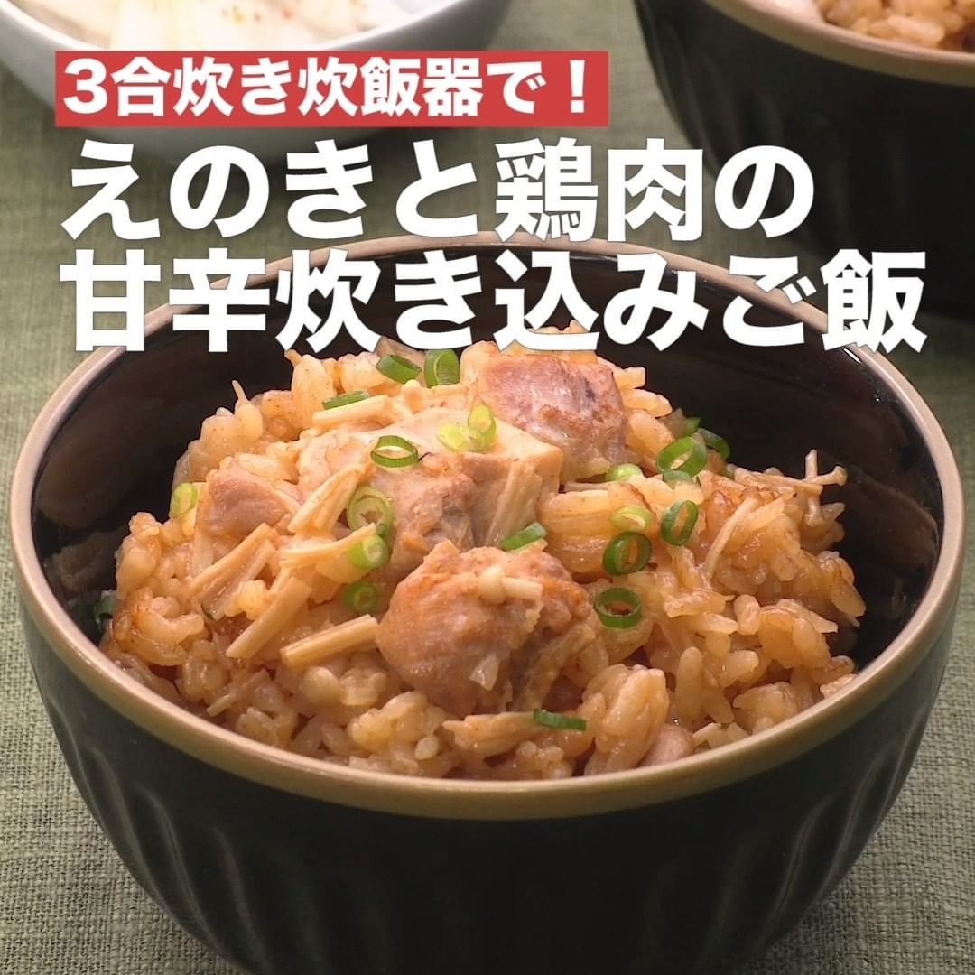 ②<3合炊き炊飯器で!えのきと鶏肉の甘辛炊き込みご飯>