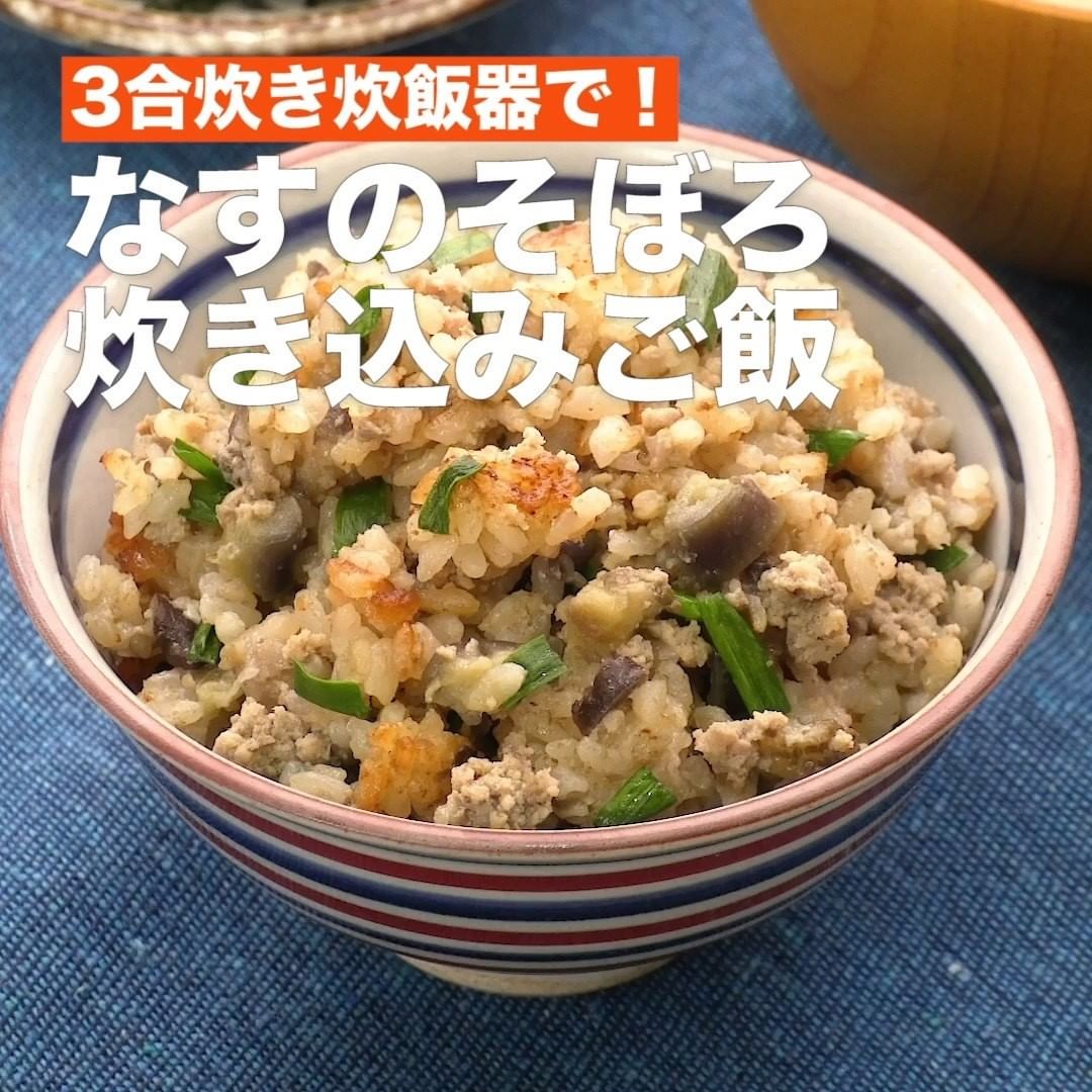 ⑥<3合炊き炊飯器で!なすのそぼろ炊き込みご飯>