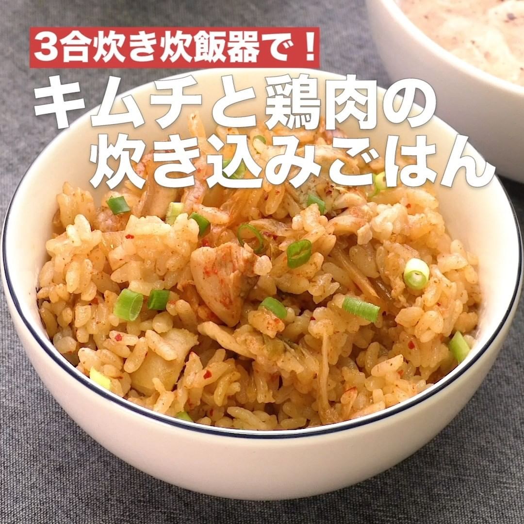 ③<3合炊き炊飯器で!キムチと鶏肉の炊き込みごはん>