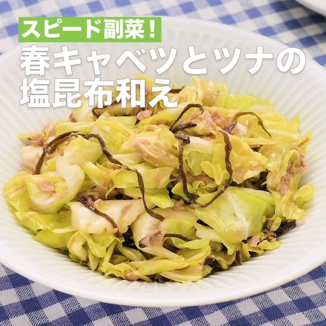 ②<スピード副菜!春キャベツとツナの塩昆布和え>