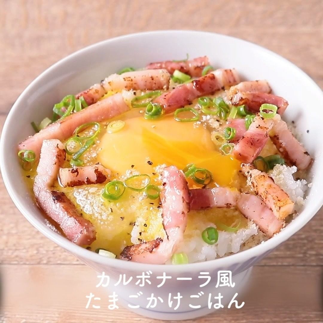 ①カルボナーラ風たまごかけごはん