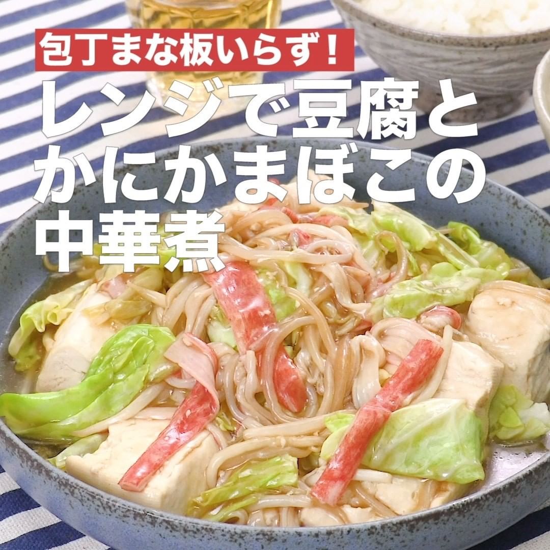 ⑤<包丁まな板いらず!レンジで豆腐とかにかまぼこの中華煮>