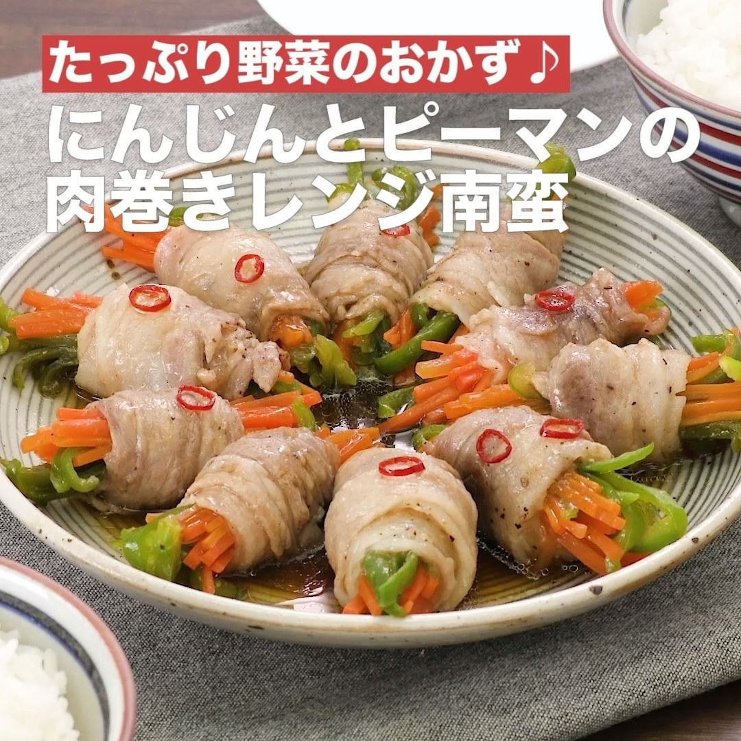 ⑦<たっぷり野菜のおかず♪にんじんとピーマンの肉巻きレンジ南蛮>