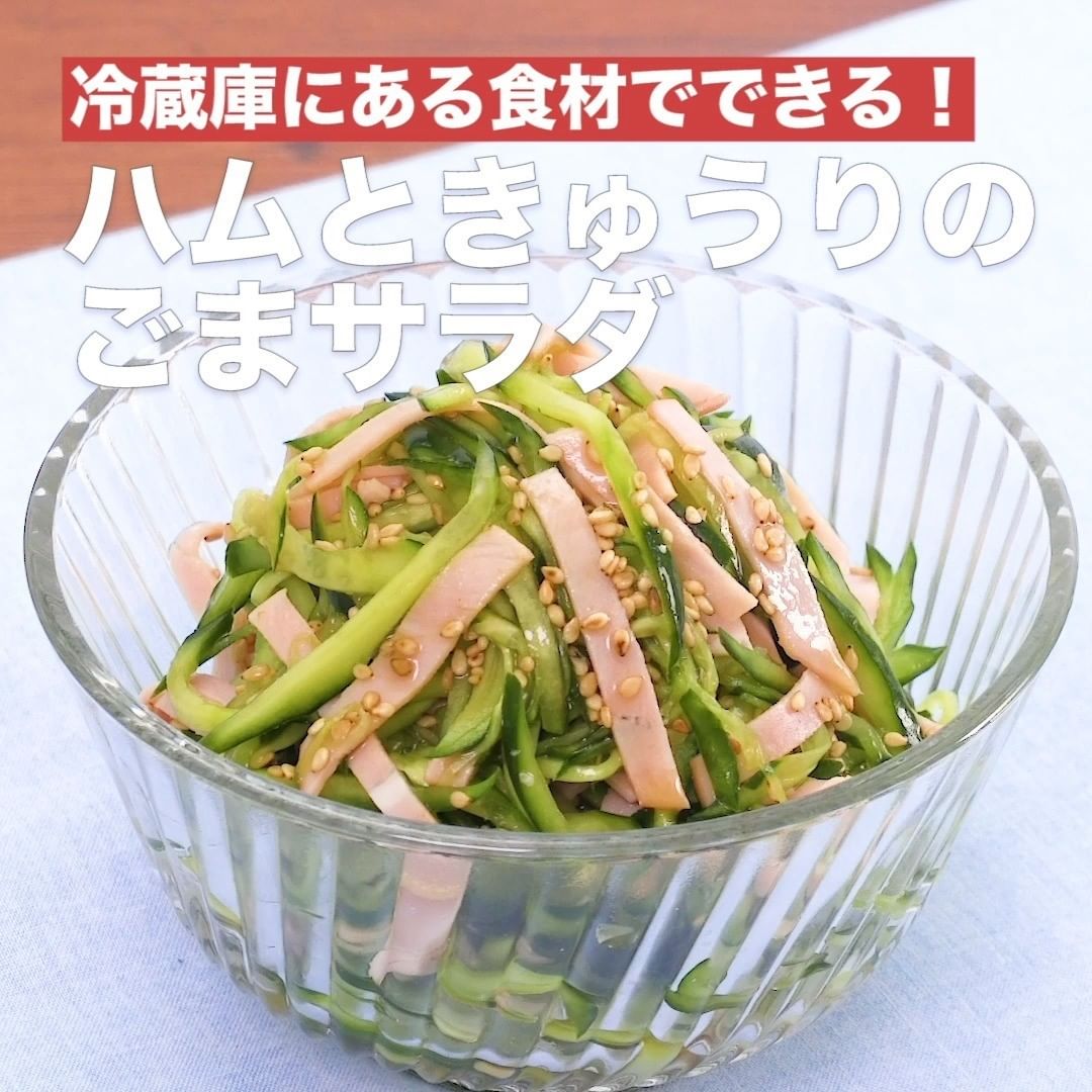 ③<冷蔵庫にある食材でできる!ハムときゅうりのごまサラダ>