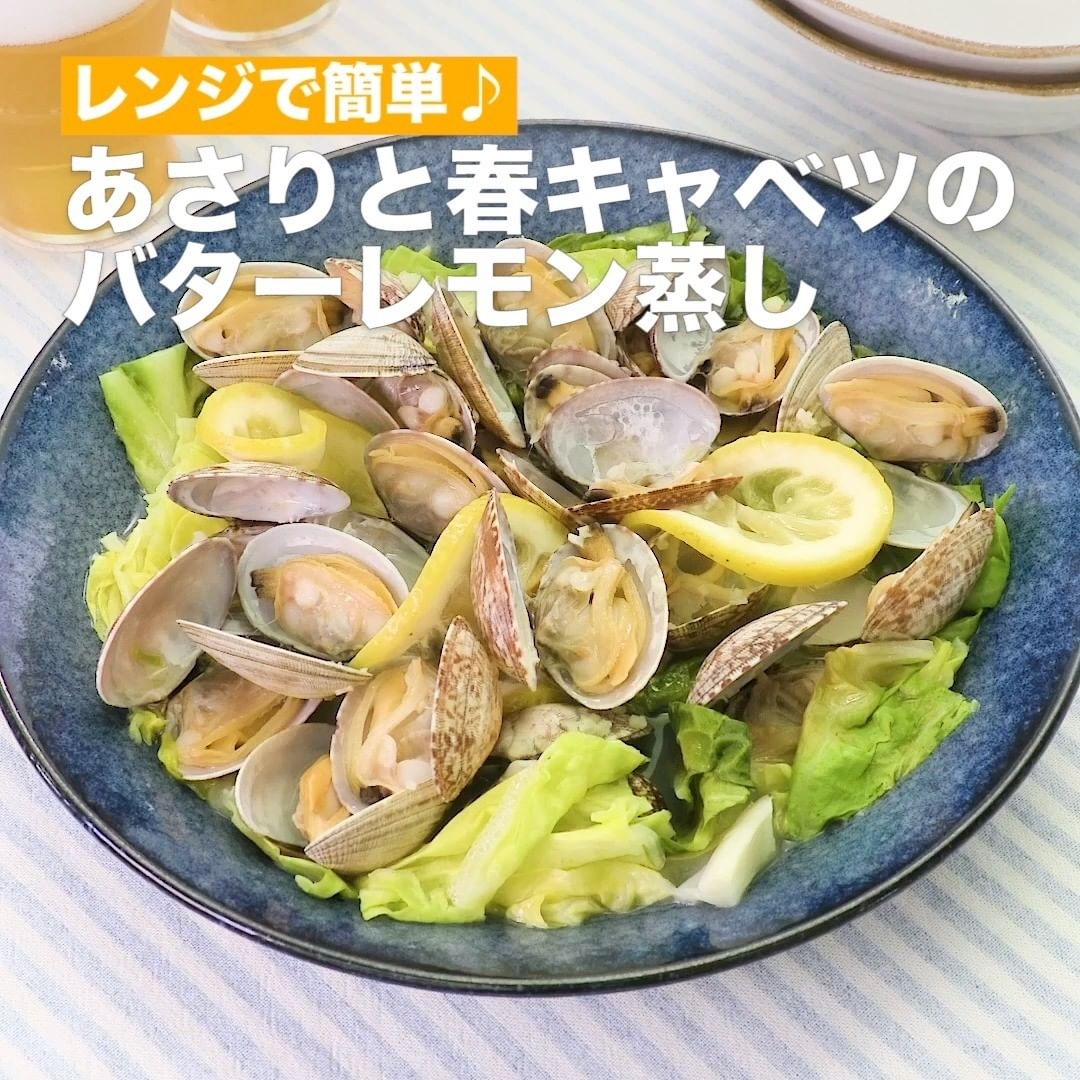 ⑤<レンジで簡単♪あさりと春キャベツのバターレモン蒸し>