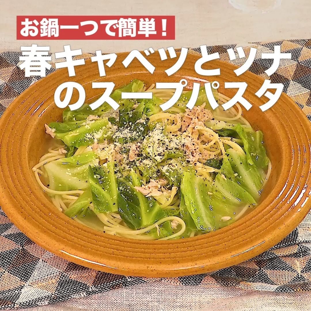 ③<お鍋一つで簡単!春キャベツとツナのスープパスタ>