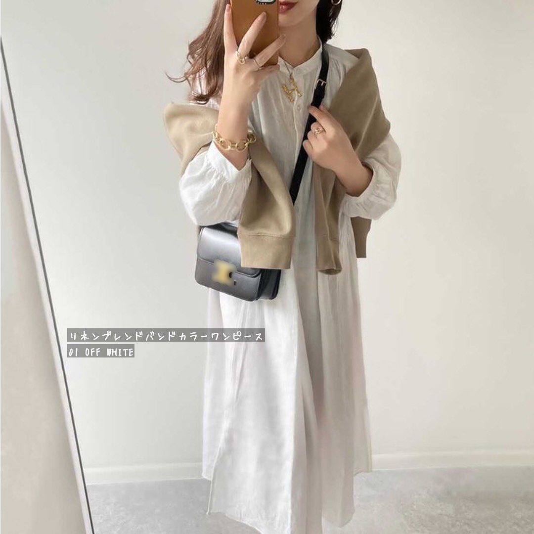 ☑︎リネンブレンドバンドカラーワンピース(7分袖)