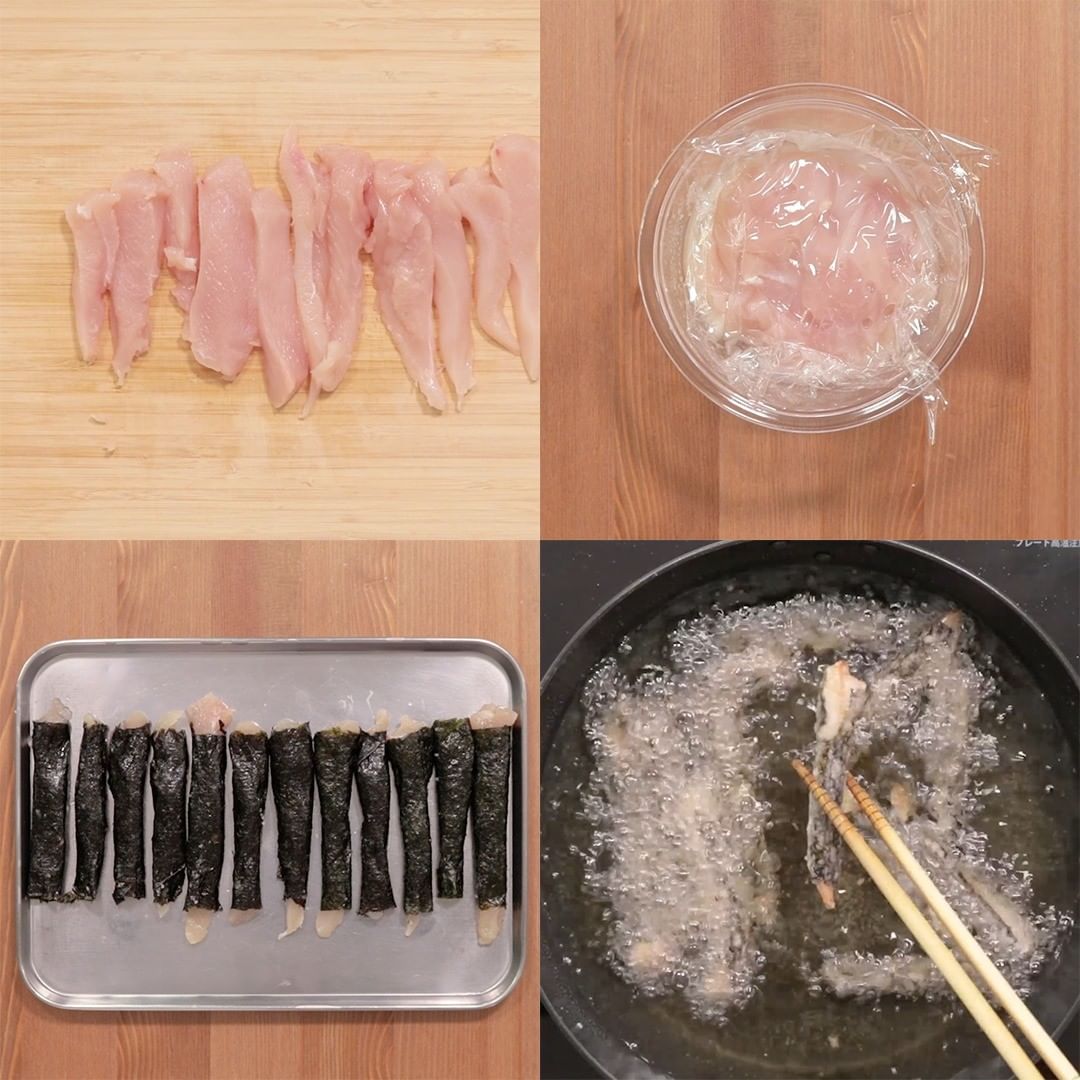 今晩のおかずに、鶏むね肉ののり塩スティックチキンはいかがでしょうか。
