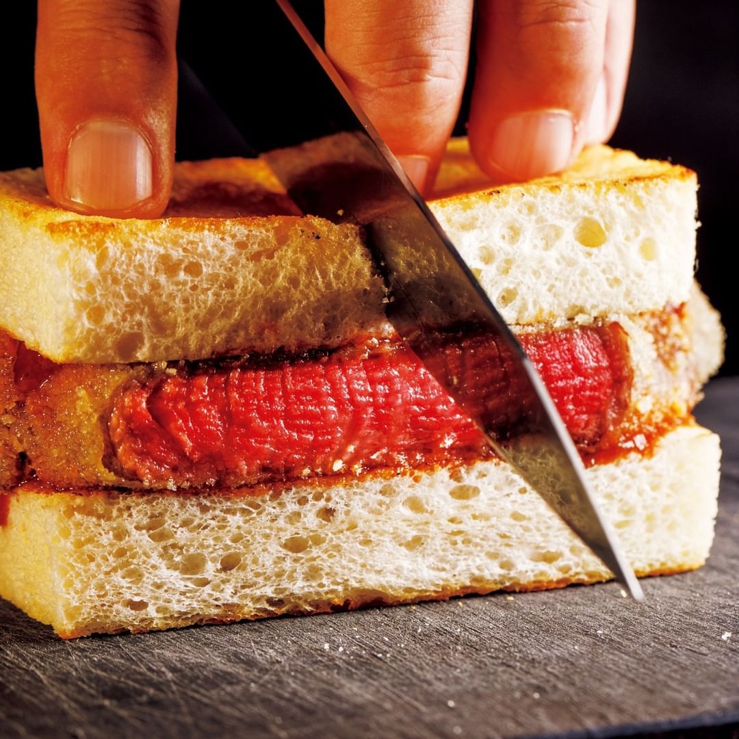 写真①▷「シャトーブリアンのロゼカツサンド」。