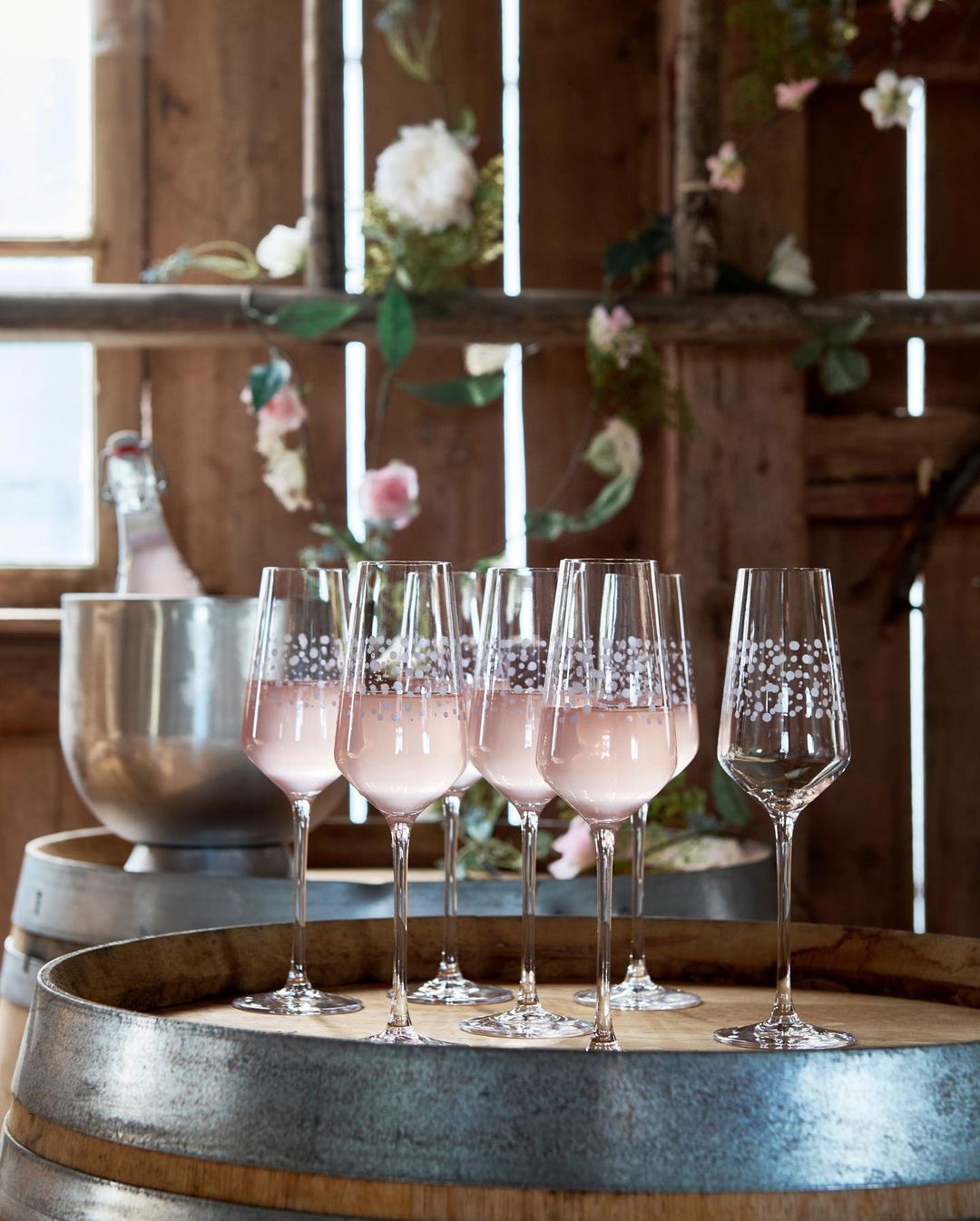 甘いごちそうにぴったりのプレートや華やかなシャンパングラスは特別な日にぴったり。クラシックながらもモダンなパターンを取り入れたデザインがスイーツや飲み物を彩ります。