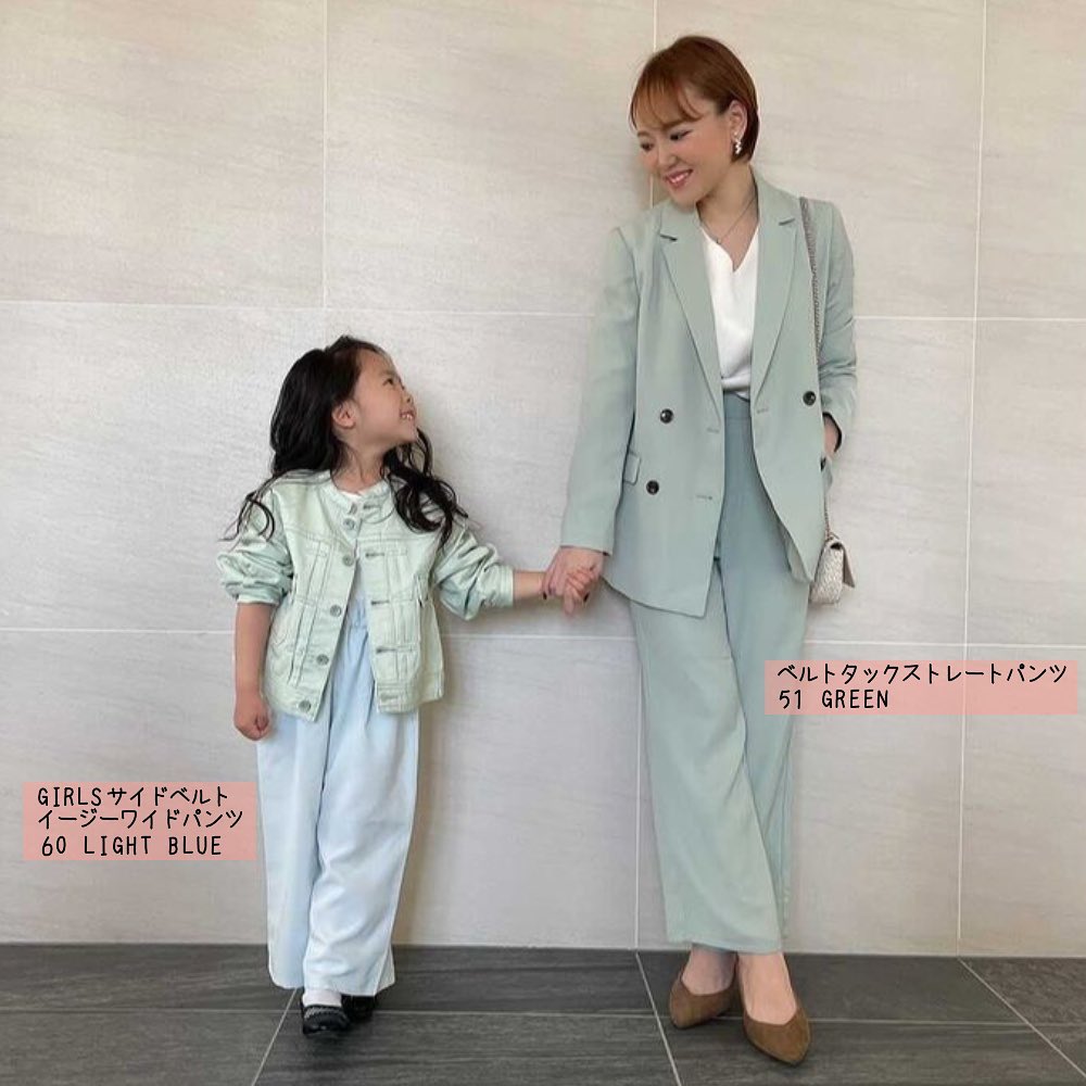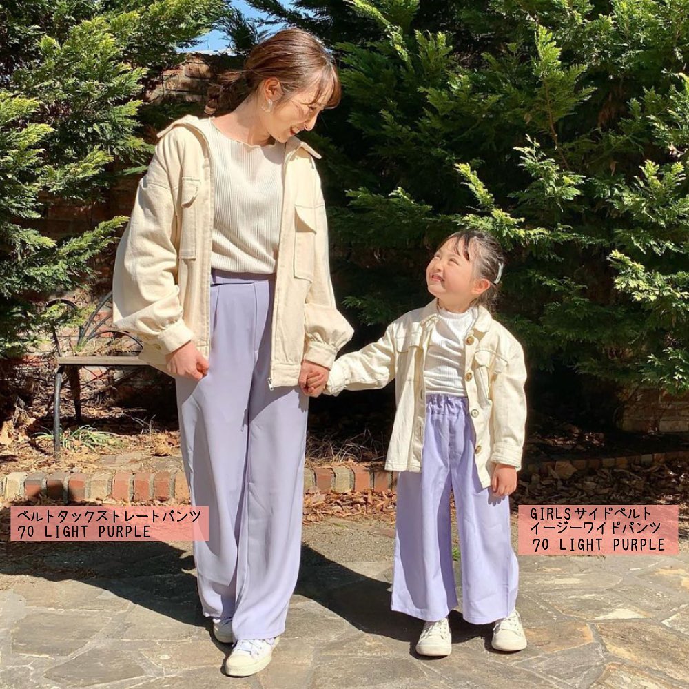 パステルカラーで、ママ達もガールズ達も春気分✨ちょっとしたお出かけも、何だか嬉しくなっちゃいますね🥰ゆるりとしたパンツで、トップスも合わせやすい💕それぞれ、普段使いもしやすいアイテムです👍今の季節に、ぴったりなパンツコーデ🙌是非、チェックしてみてくださいね💁♀️💕