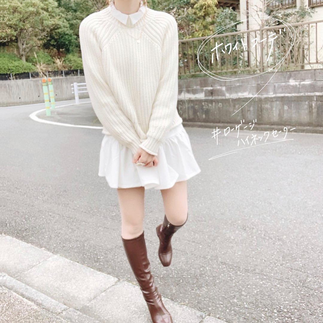 ラグランスリーブが、ニュアンスをプラスするので、ワントーンコーデにもぴったりですね👌ガーリーな着こなしは、CUTEで好印象間違い無し🥰低めのハイネックで、春先までバッチリ使えます👏是非、チェックしてみてくださいね💁♀️💕