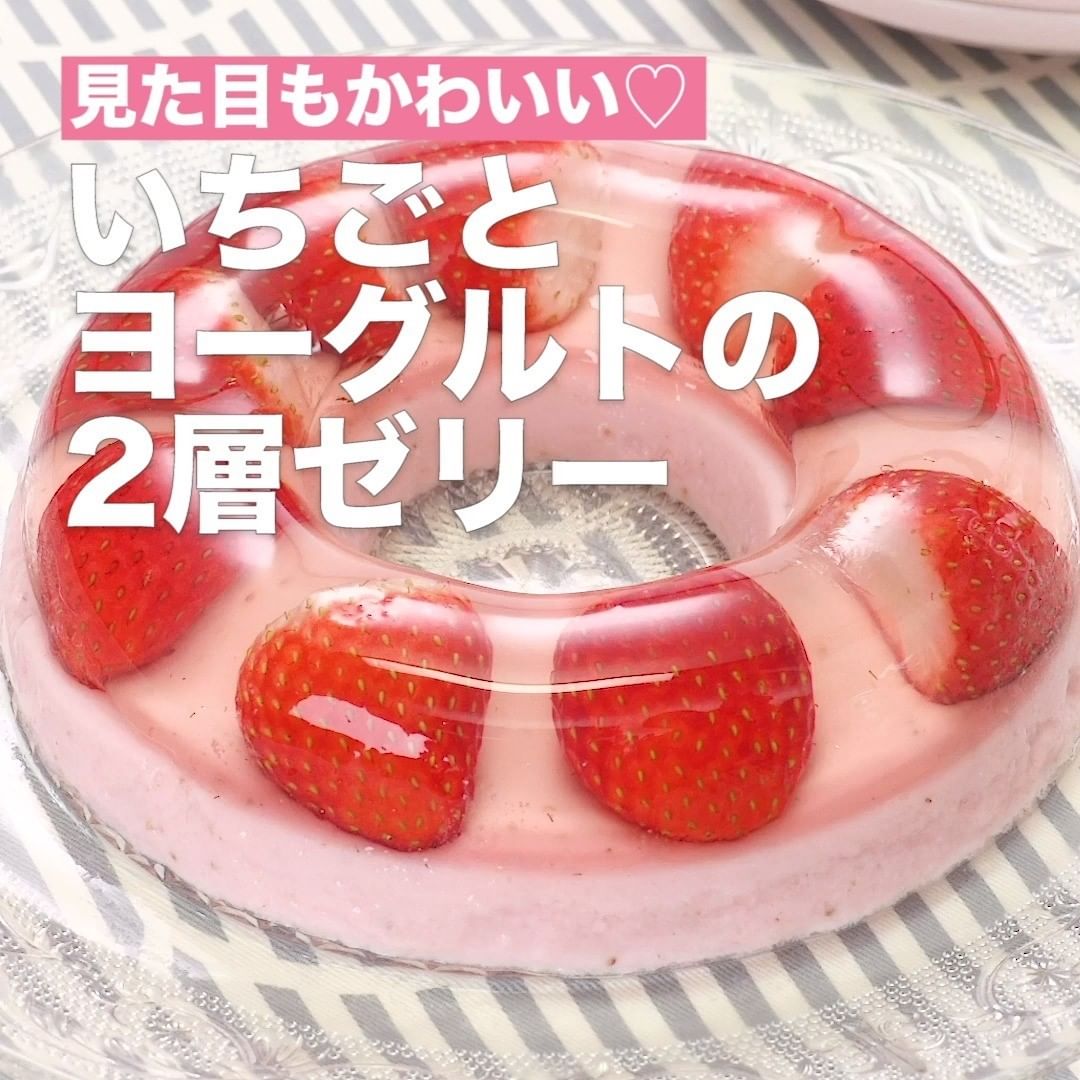 ⑦<見た目もかわいい♡いちごとヨーグルトの2層ゼリー>